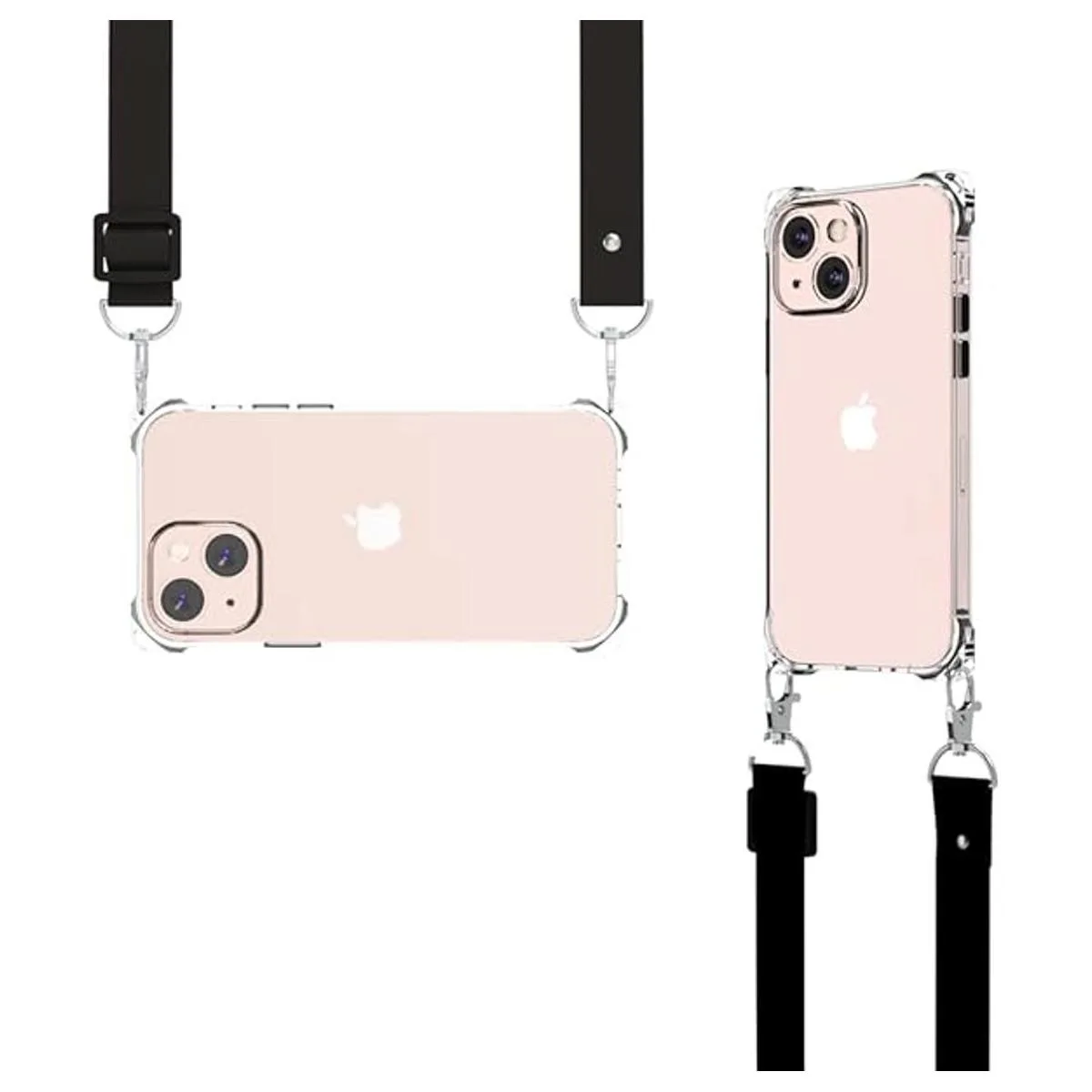 Wuwedo Funda transparente para iPhone 13 con correa cruzada ajustable desmontable, ajuste delgado, a prueba de golpes, con cordón de hombro antipérdida para niñas y mujeres