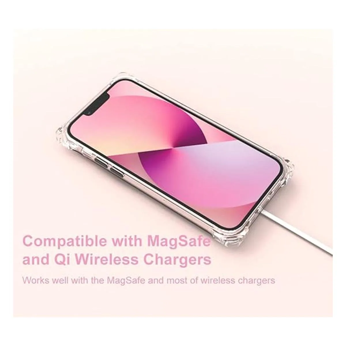Esta funda para iPhone se adapta perfectamente al iPhone 13 6.1 pulgadas. Delgado y fino, sin añadir volumen. Puede funcionar con cargador inalámbrico y Magsafe sin quitar la funda.