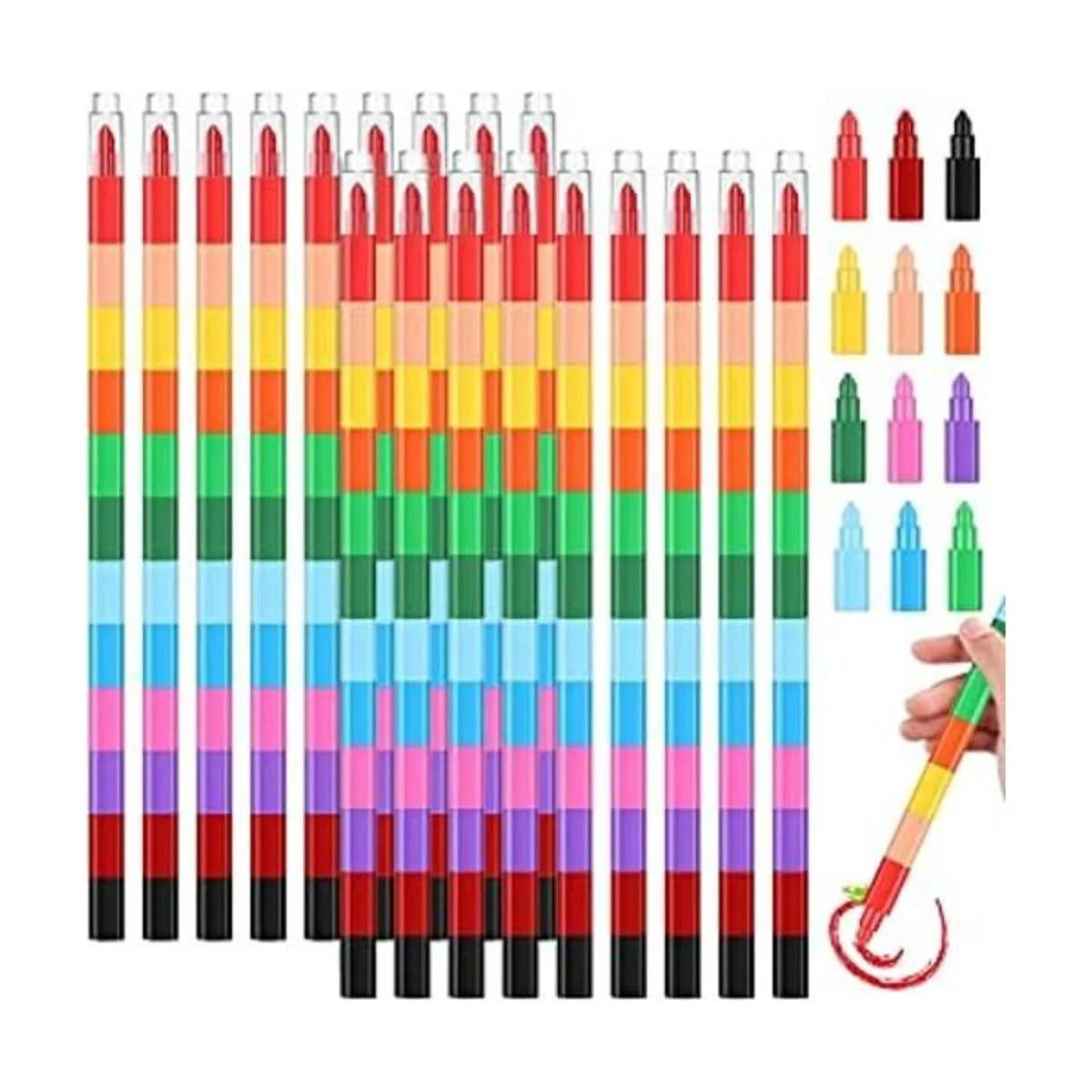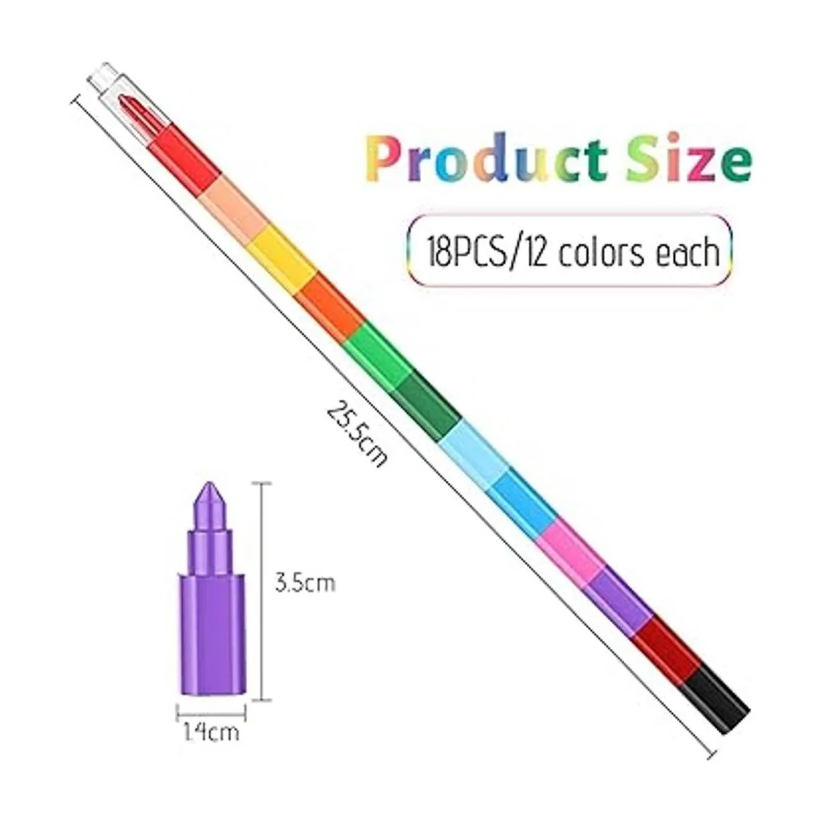 WXJ13 18 lápices de colores apilables, lápices de colores apilables, lápices de cera 12 en 1, lápices de colores para la oficina, suministros escolares, 12 colores