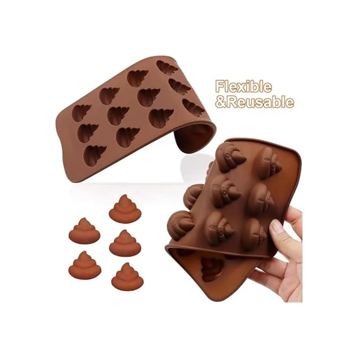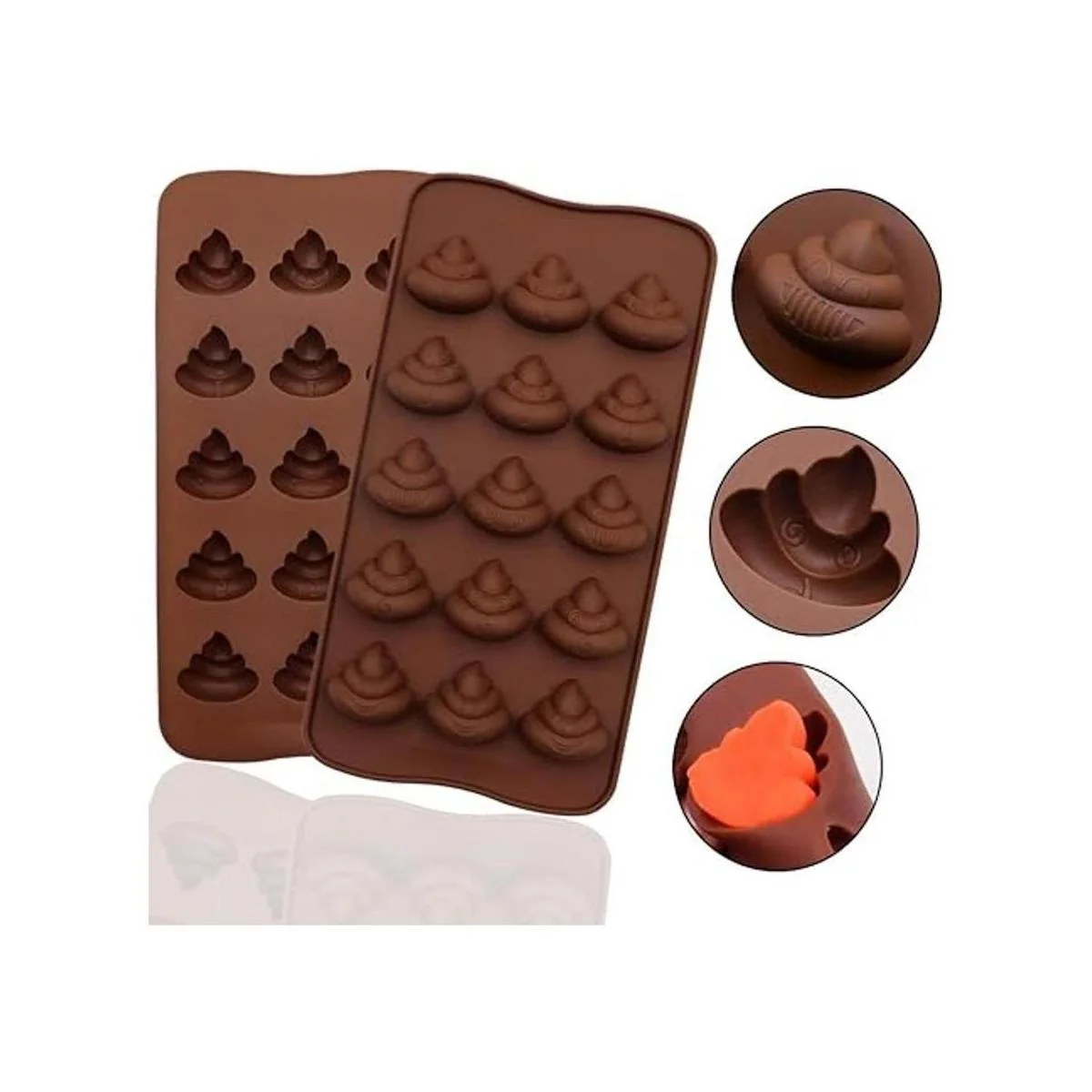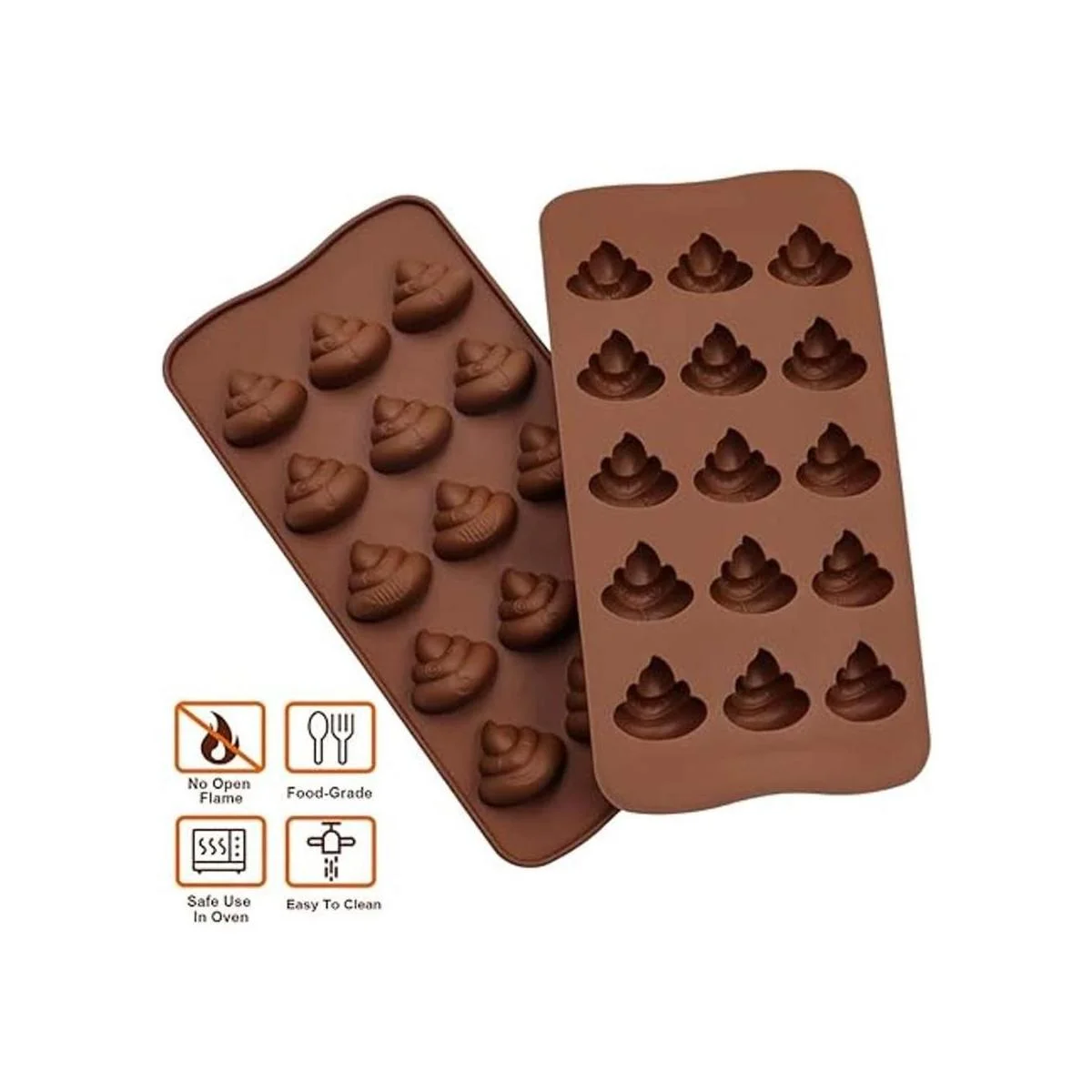WYBG 2 moldes de silicona para caca, moldes de silicona divertidos para chocolate, pasteles, dulces, pudín, fondant, caca emoción molde para hornear, jabón para hacer jabón, 15 cavidades marrón