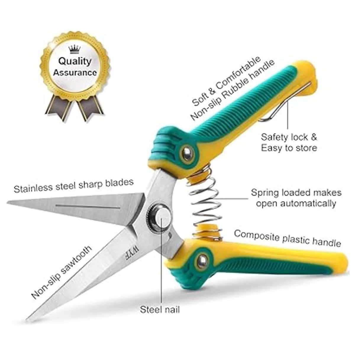 WYF Tijeras de podar para jardinería 8,1 pulgadas con cuchillas rectas de acero inoxidable, tijeras de jardín ultra afiladas para flores, cosecha de frutas y verduras, plantas de corte verde