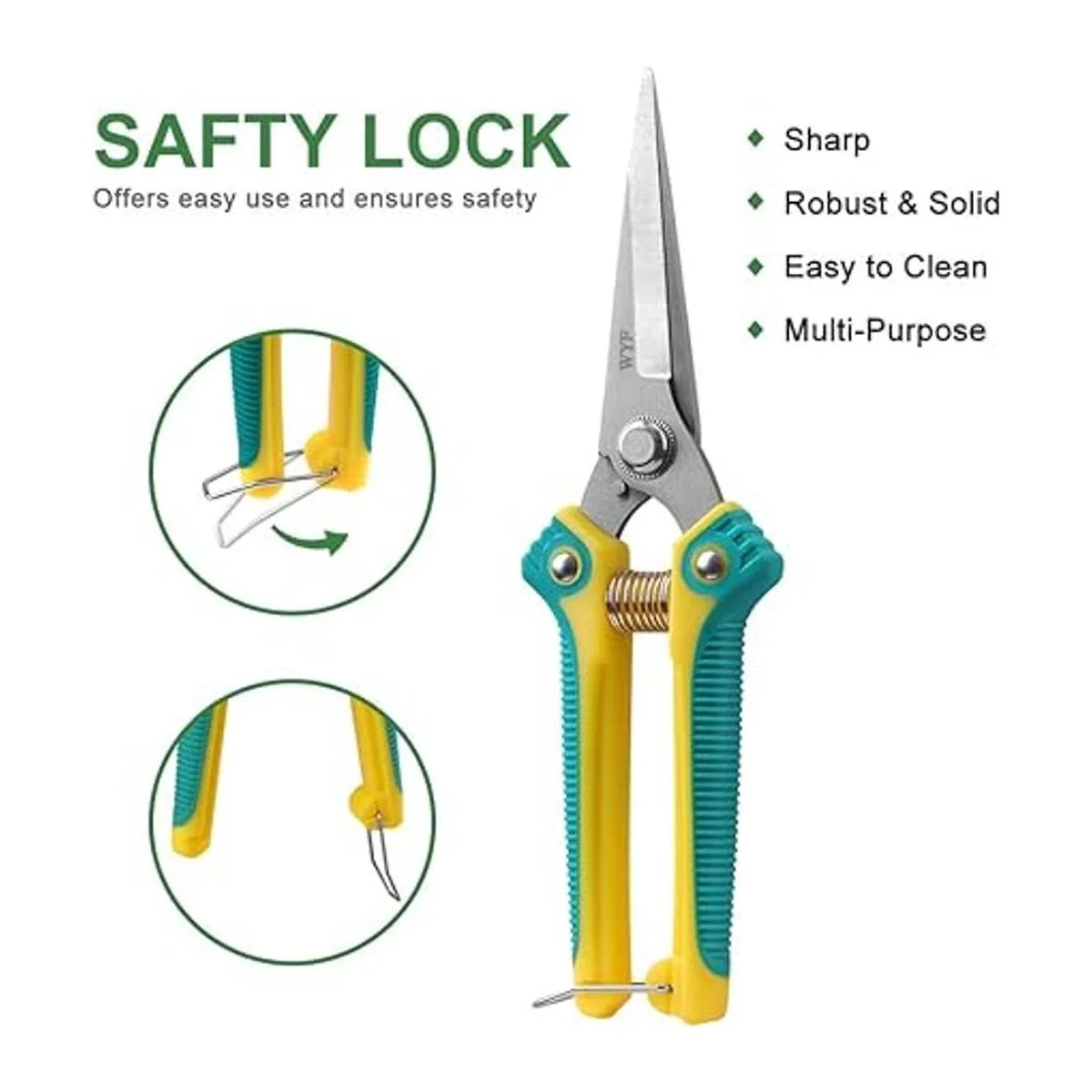 Haz cortes precisos: la hoja larga y recta de las tijeras de podar puede entrar fácilmente en el espacio estrecho y cortar ramas y frutas unidas a las plantas sin ningún esfuerzo. Las tijeras de jardín son adecuadas para podar flores muertas, tallos de árbol, arbustos, semillas pequeñas, cosecha de verduras.