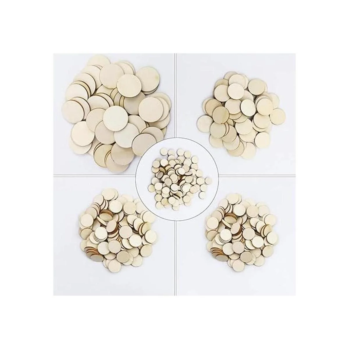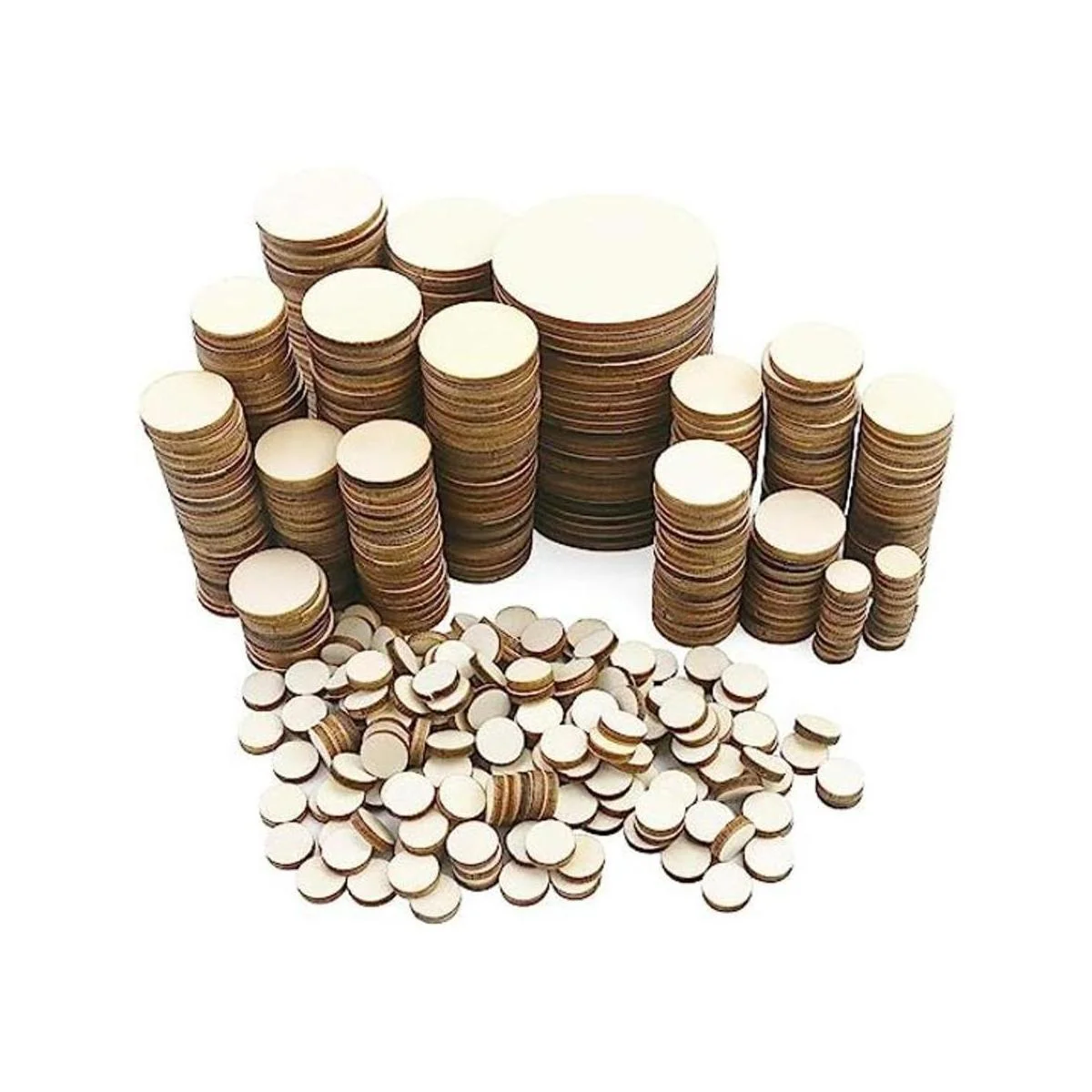 Paquete económico de discos Wodden: recibirás 525 piezas de disco de madera redondo de varios tamaños, satisface fácilmente las necesidades de múltiples proyectos de proceso de bricolaje.