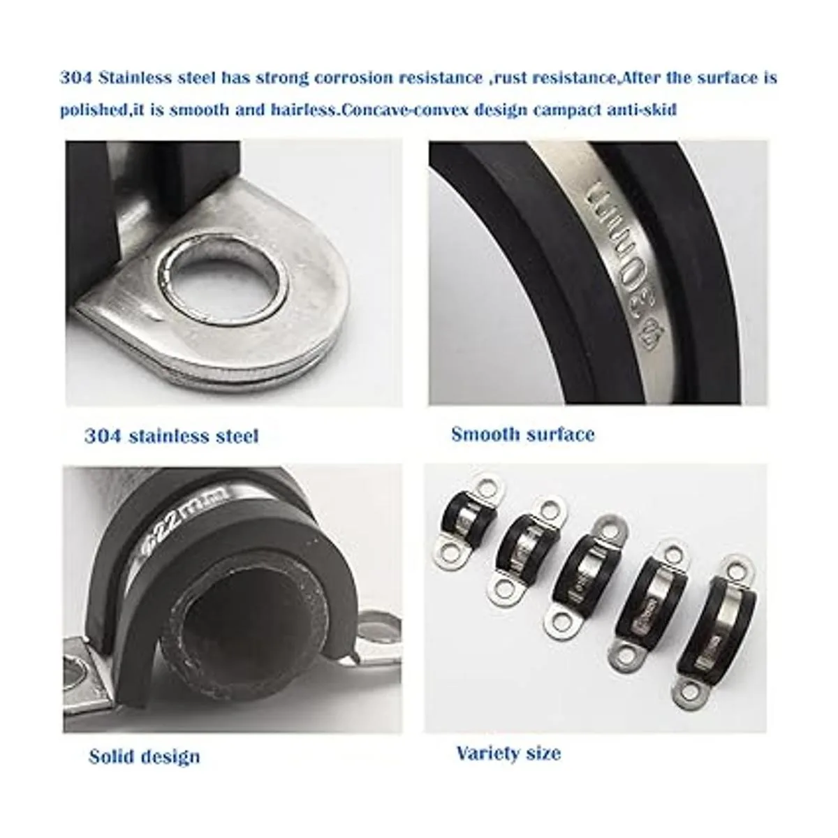 Material de alta calidad: correa de acero inoxidable 304 con almohadillas acolchadas de goma EPDM aisladas, resistente a la sal, antioxidante, anticorrosión, impermeable y a prueba de aceite, que se puede utilizar a largo plazo.