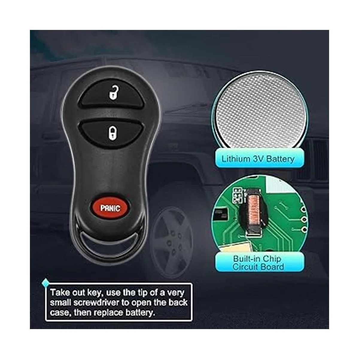 Paquete para llavero de coche: 2 controles remotos de entrada sin llave de coche batería incluida. Tamaño: 2.8 x 1.3 in largo x ancho. Comprueba el número OE/FCC ID y la imagen del producto con el original antes de comprar.