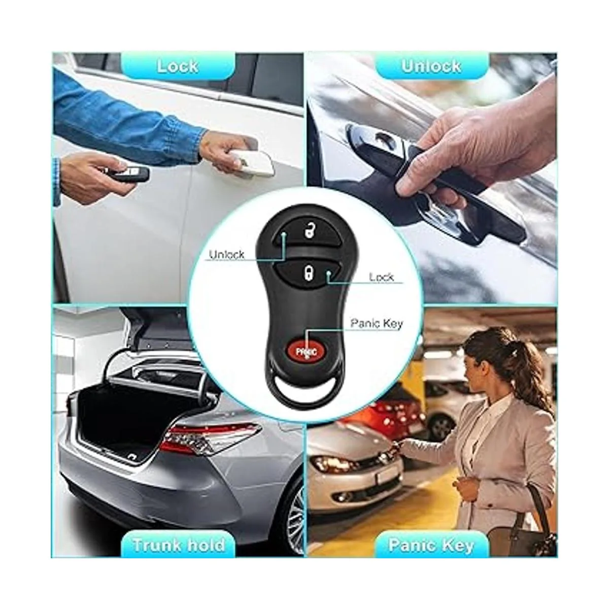 Ventajas de nuestro mando a distancia sin llave: con chip integrado, respuesta sensible, llave de coche de 3 botones: bloqueo remoto, desbloqueo, pánico. Respuesta rápida, control remoto inalámbrico. Confirma que la llave original tiene el mismo patrón de botón y el vehículo está equipado con la opción de empuje para arrancar.