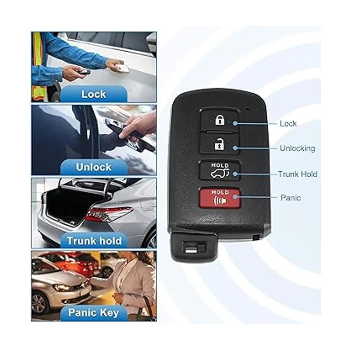 Material: esta funda protectora para llave remota está hecha de material TPU, material duradero para un servicio prolongado. 4 botones, cómodo de presionar, los mismos botones que el original.