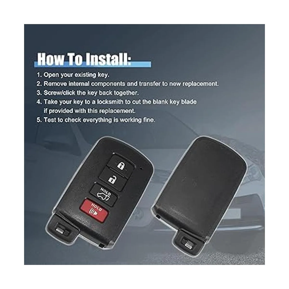 Número OE: HYQ14FBA, 1551A14FBA. Compatibilidad: carcasa de llave de repuesto para Toyota RAV4 20132019, para Toyota Sequoia 20192020, para Toyota Highlander 20142018. Comprueba que los botones de las llaves, la hoja de la llave y la composición interna sean los mismos que tu llave antigua antes de realizar el pedido.
