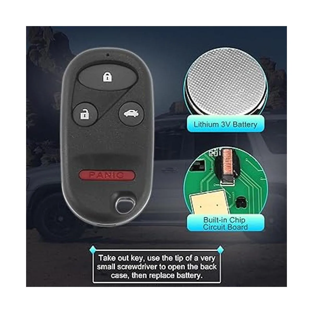 Paquete para llavero de coche: 1 control remoto de entrada sin llave batería incluida. Tamaño: 2.6 x 1.3 in largo x ancho. Comprueba el número OE/FCC ID y la imagen del producto con el original antes de comprar.