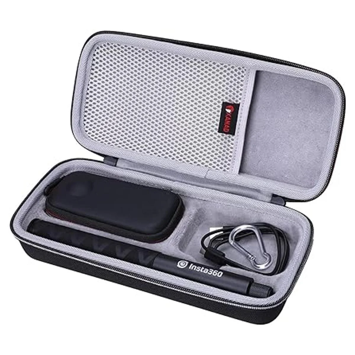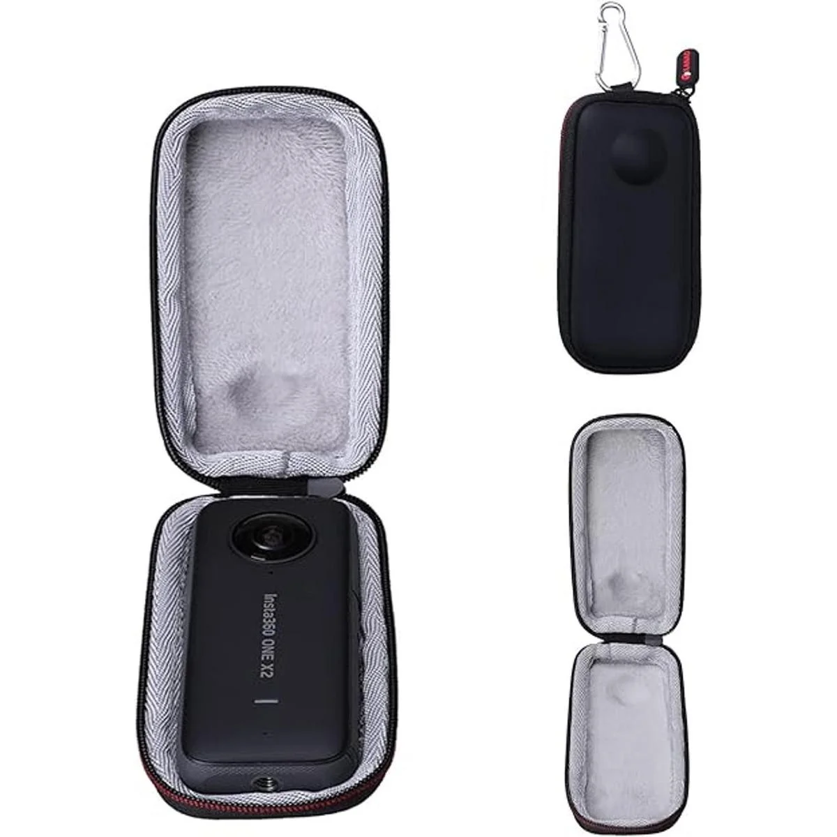 XANAD Funda rígida para Insta360 ONE X2 o Insta360 X3, kit de cámara de acción impermeable de 360 grados bolsa gris con cubierta pequeña y mosquetón