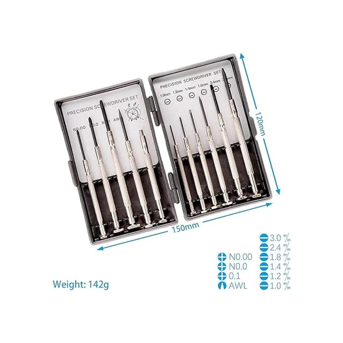 11 estilos diferentes: nuestro mini juego de herramientas de precisión incluye 00 puntos, 0 puntos, 1 punto Phillips y cabeza plana de 0.039 in, 0.047 in, 0.055 in, 0.071 in, 0.094 in, 0.118 in y 1 punzón, 1 magnético