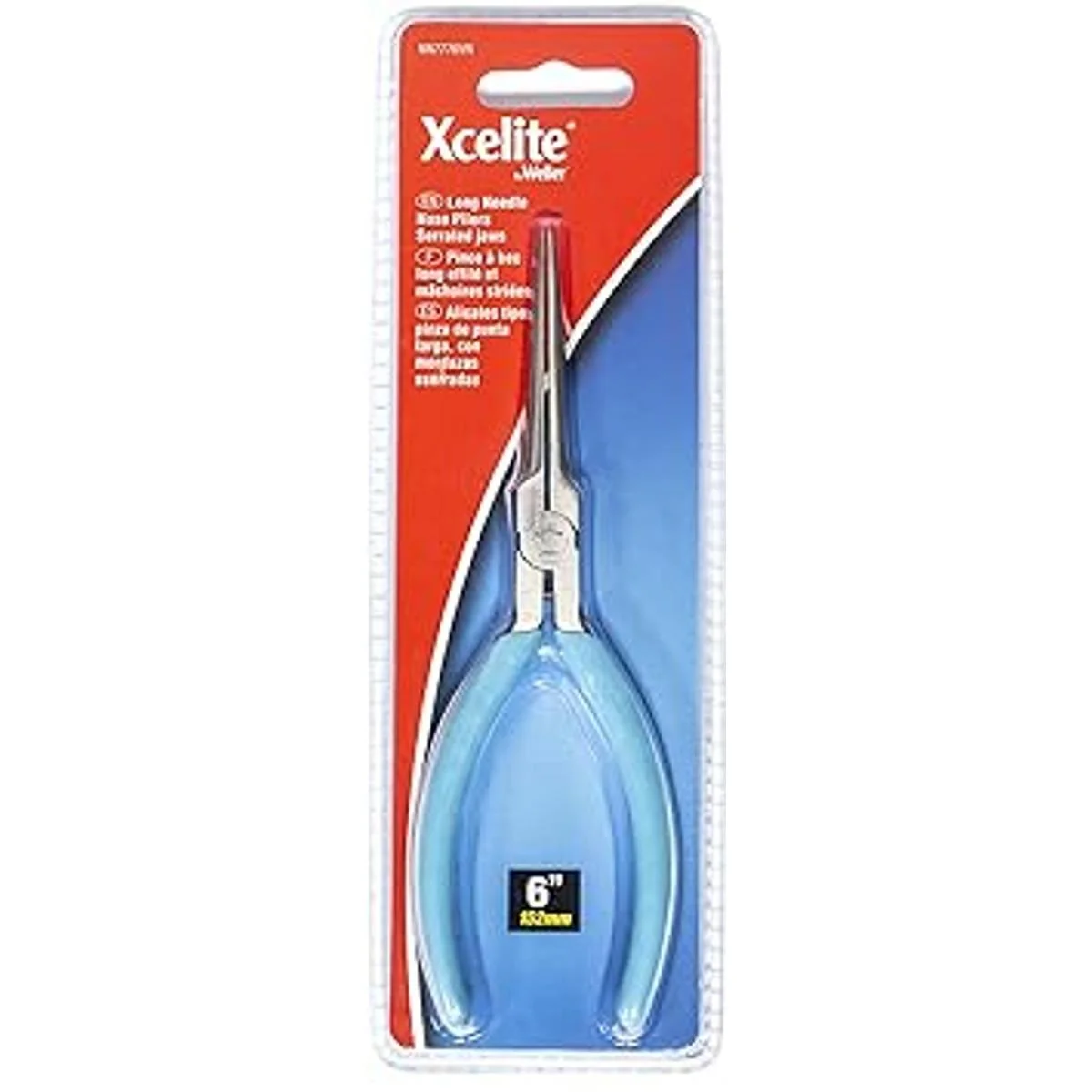 Weller Xcelite 6 Long Needle Nose Plier with serrated jaws is designed for accurate work in hardtoreach area and to handle most forming, looping, twisting, insertion, and pickup jobs
