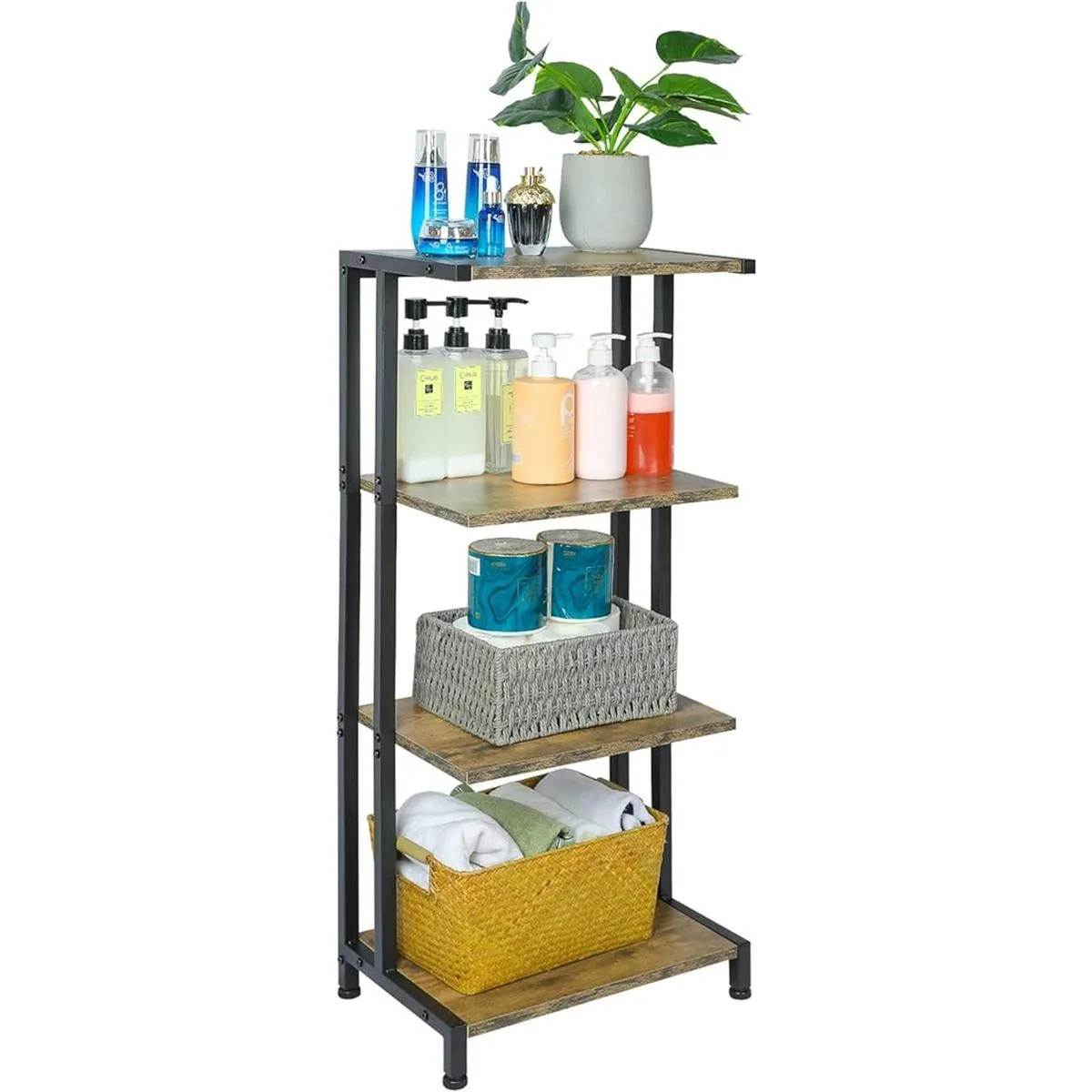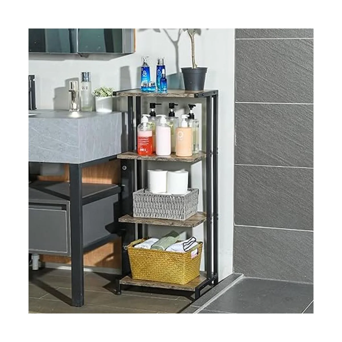 Xcosrack Estante de baño de 4 niveles, estante de exhibición compacto multifuncional, unidad de exhibición de estantería de piso pequeña, estantes de esquina industriales para baño, oficina, dormitorio, sala de estar