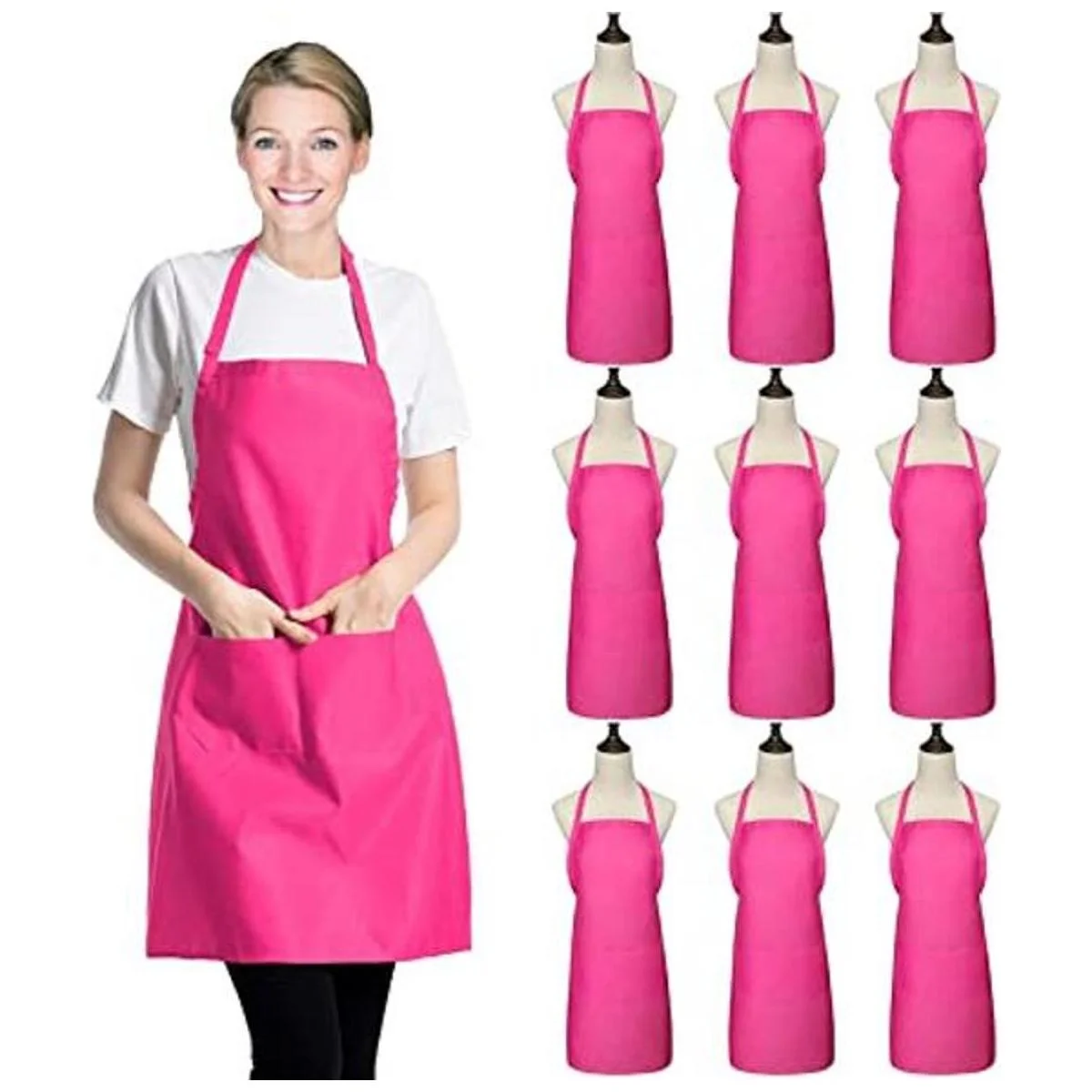 XEEYAYA Paquete de 9 delantales rosados para mujeres, niñas y mujeres con bolsillos, delantales de cocina a granel para cocinar, pintar, barbacoa, asar y hornear paquete de 9, rosa