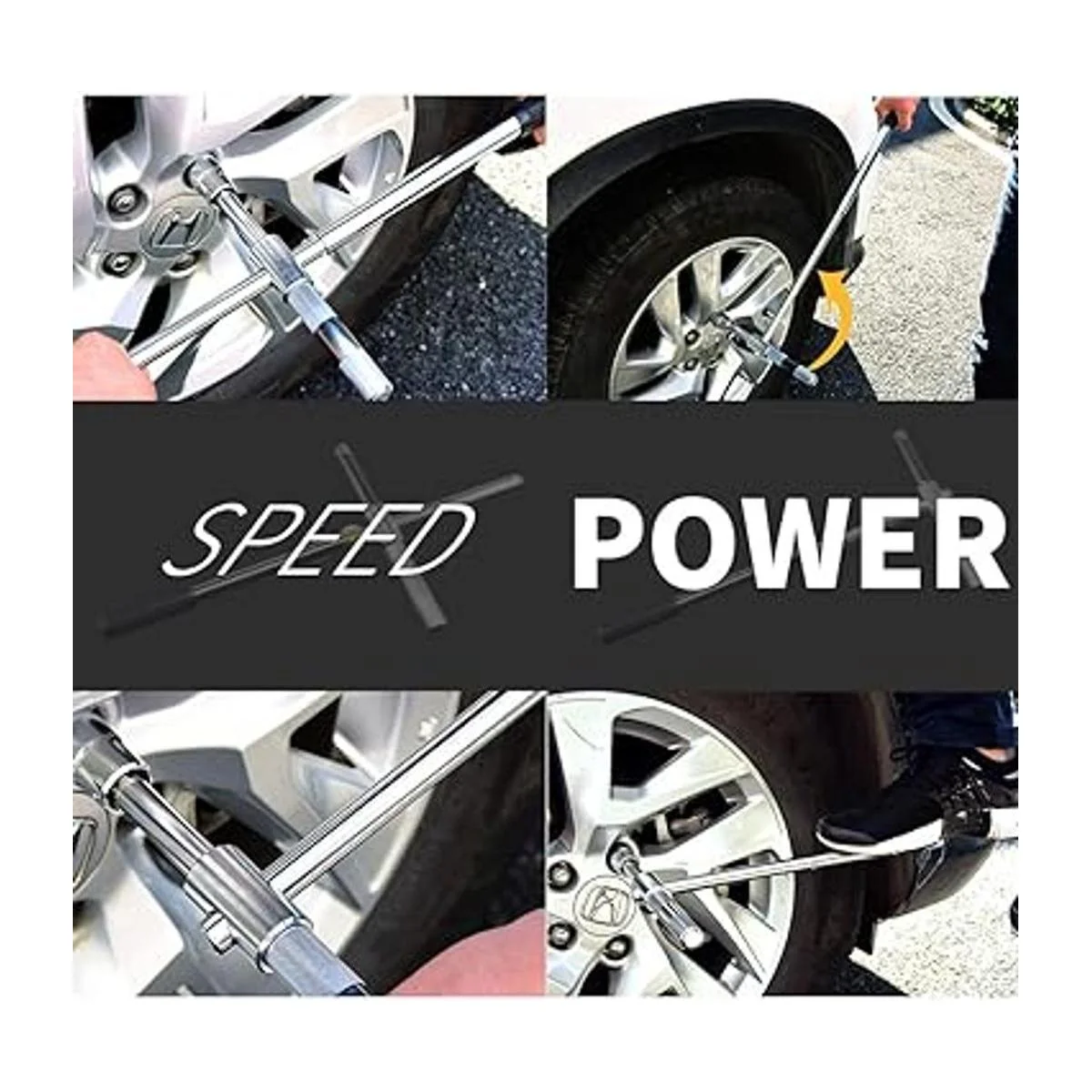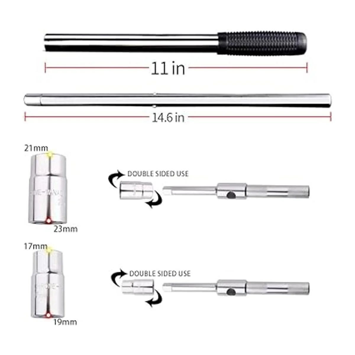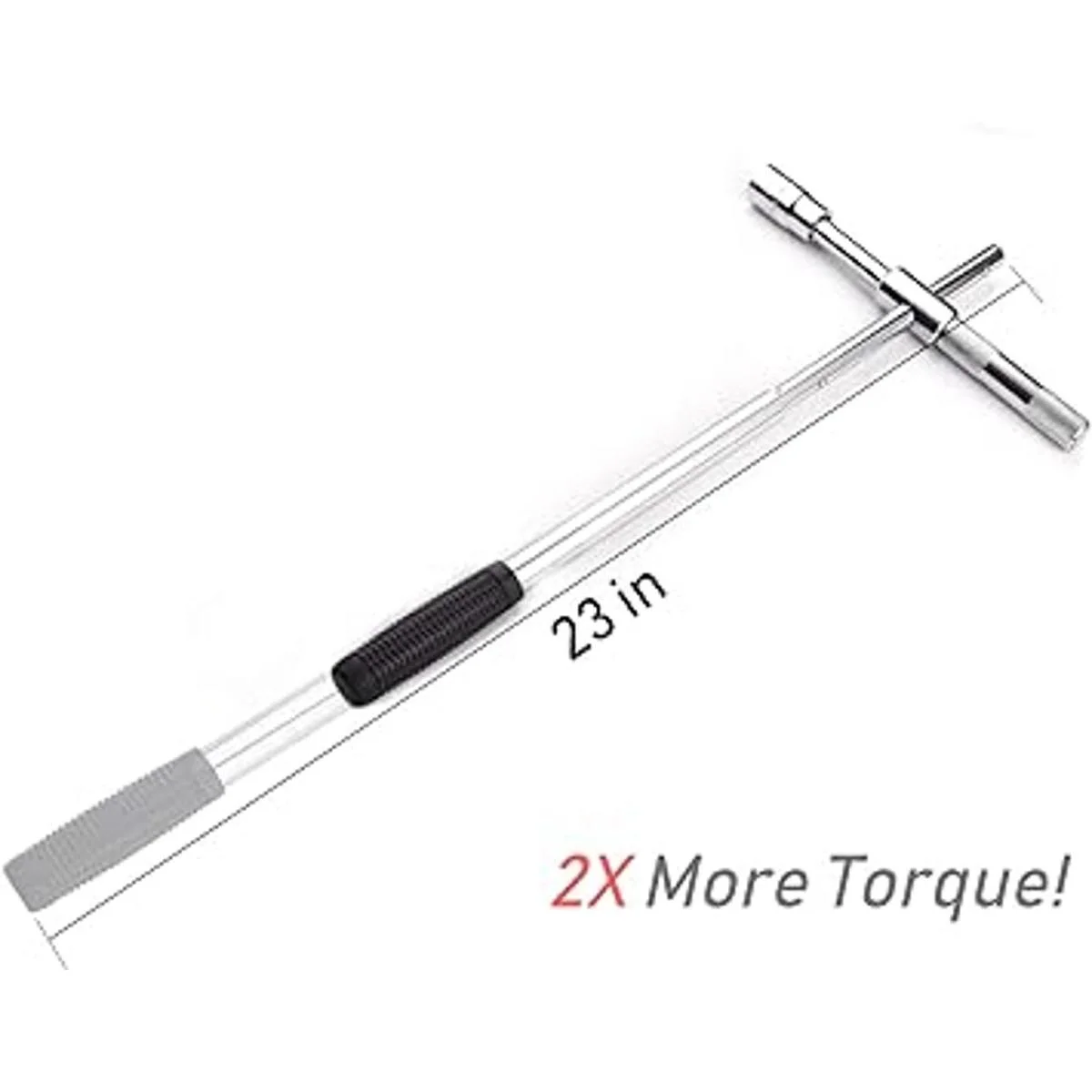 Llave telescópica y desmontable: la llave telescópica y movible se extiende hasta 23 pulgadas para un máximo apalancamiento. Esto te permite quitar fácilmente la tuerca.