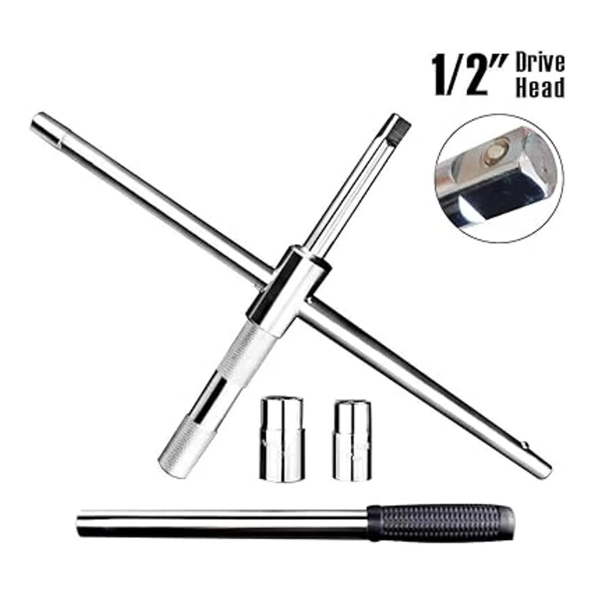 XERGUR Llave universal extendida de 23 pulgadas, juego de llaves de tuercas de hierro de 4 vías con bolsa de almacenamiento y enchufes estándar 0.669 in0.748 in, 0.827 in0.906 in para llave cruzada resistente, llave de rueda