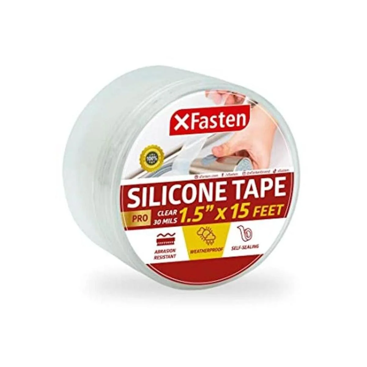 XFasten Cinta de silicona autofusible Pro, transparente, 1.5 pulgadas x 15 pies, cinta de tubo de reparación de silicona extrema de 30 mils para electricidad, manguera de radiador, manguera de jardín, sello de agua coaxial y cinta elástica