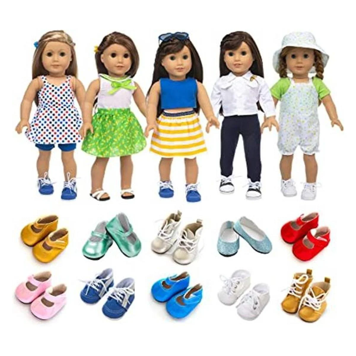 XFEYUE Ropa y accesorios de muñeca americana de 18 pulgadas, 5 juegos de ropa de muñeca 2 zapatos de estilo aleatorio para ropa de muñeca de 18 pulgadas
