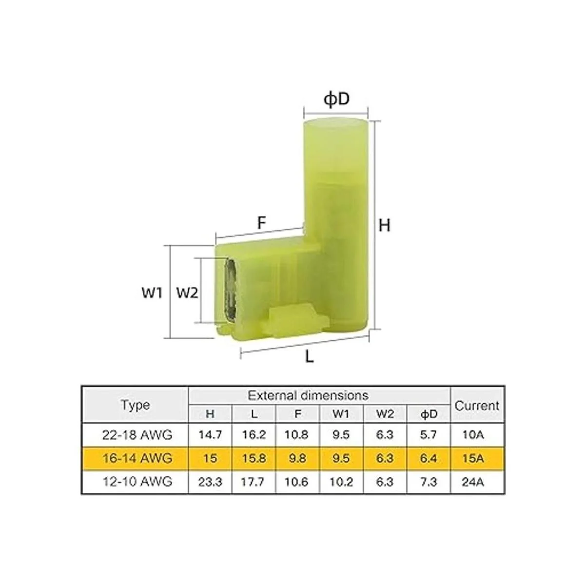 XHF Conectores de pala de ángulo recto en forma de bandera de 90 grados de 1210 AWG de nailon totalmente aislados, conectores de cable de crimpado rápido, 50 piezas