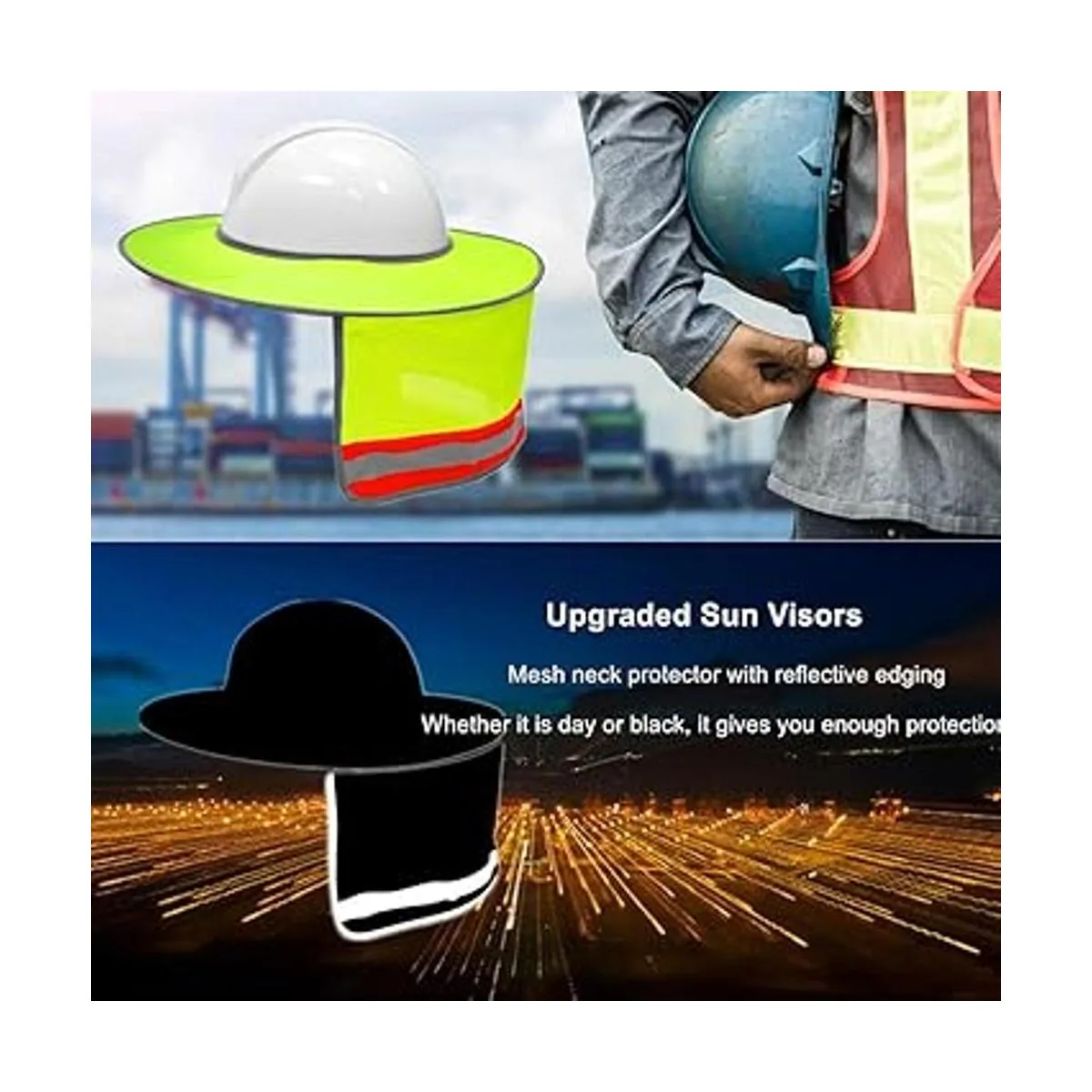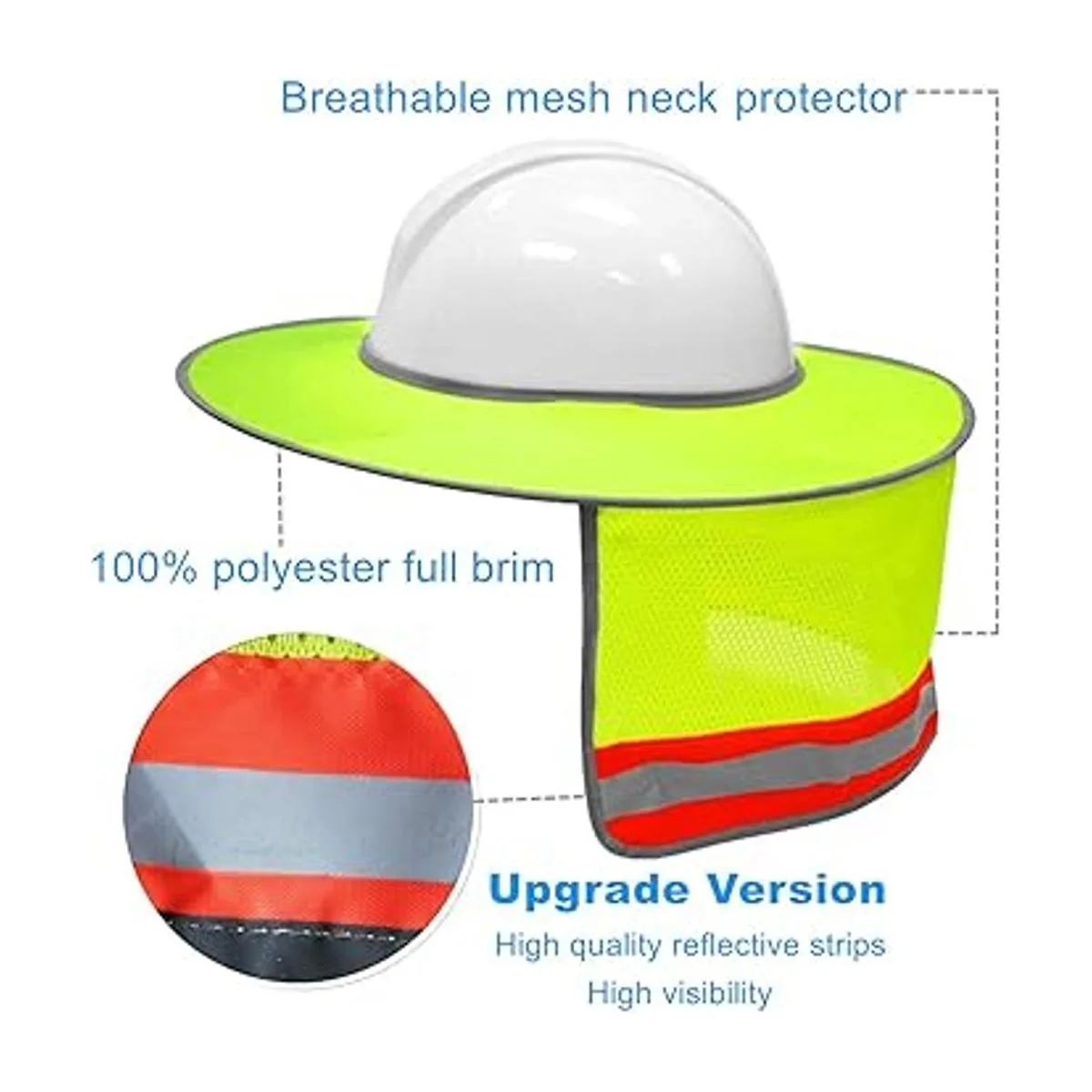 Borde completo: evita la luz solar directa a los ojos para un campo de visión claro y amplio. El color amarillo brillante y la tira reflectante te mantienen visibilidad de forma segura mientras trabajas.