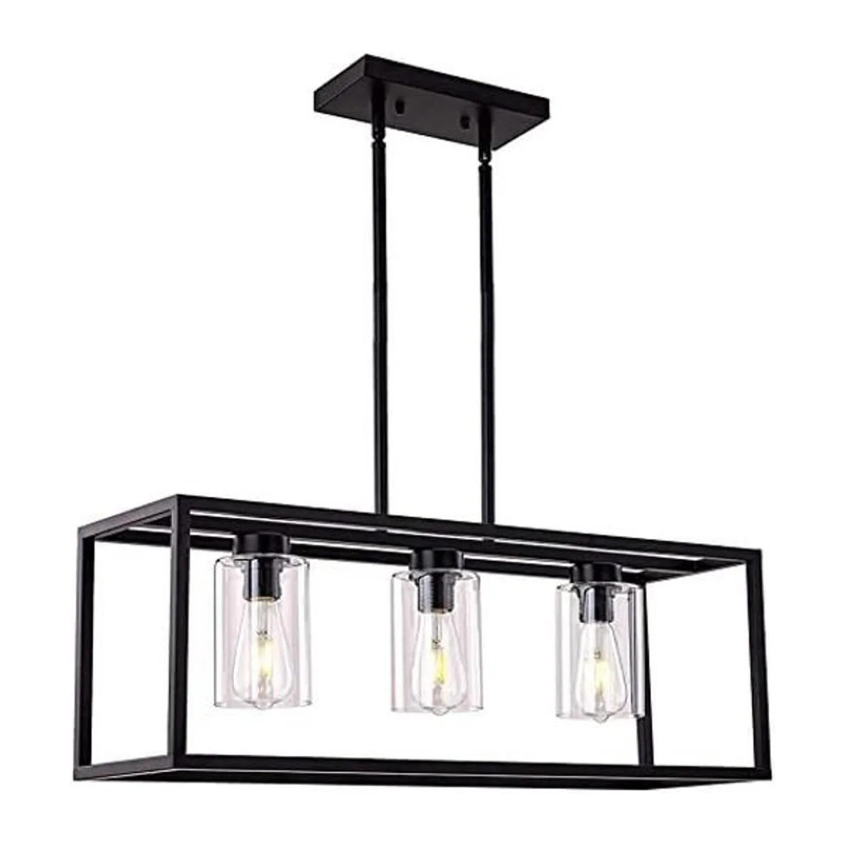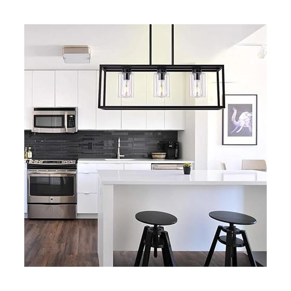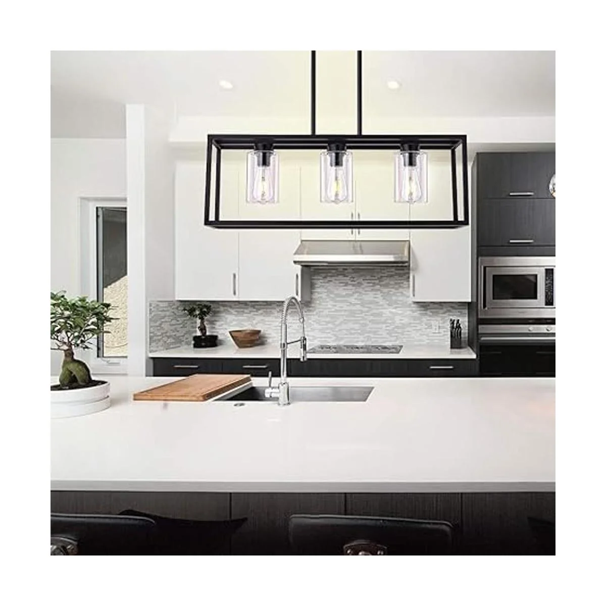 Diseño contemporáneo: esta sencilla iluminación colgante lineal para isla con pantalla de cristal transparente, diseño único para iluminar el corazón de tu cocina, comedor o lugares de estilo granja.