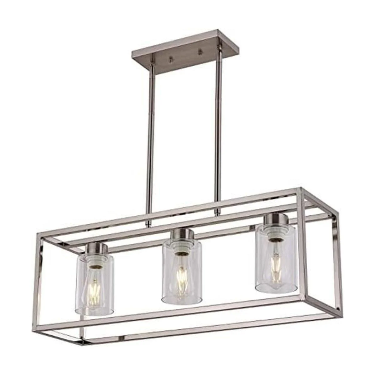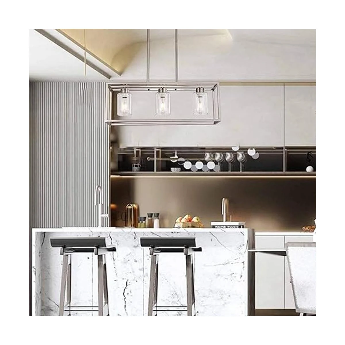 Diseño contemporáneo: esta sencilla iluminación colgante lineal para isla con pantalla de cristal transparente, diseño único para iluminar el corazón de tu cocina, comedor o lugares de estilo granja.
