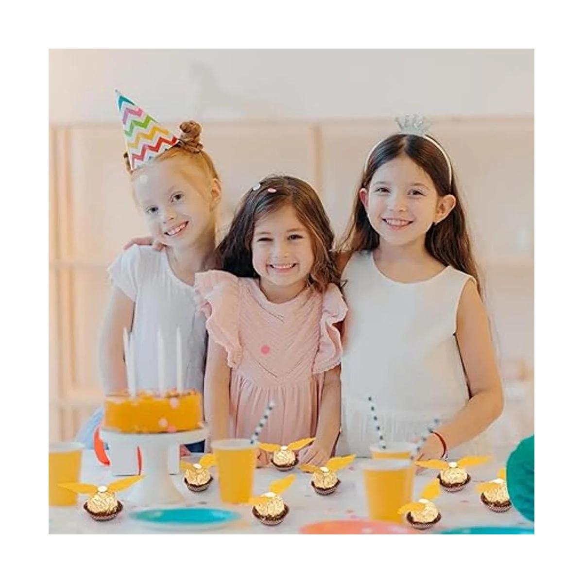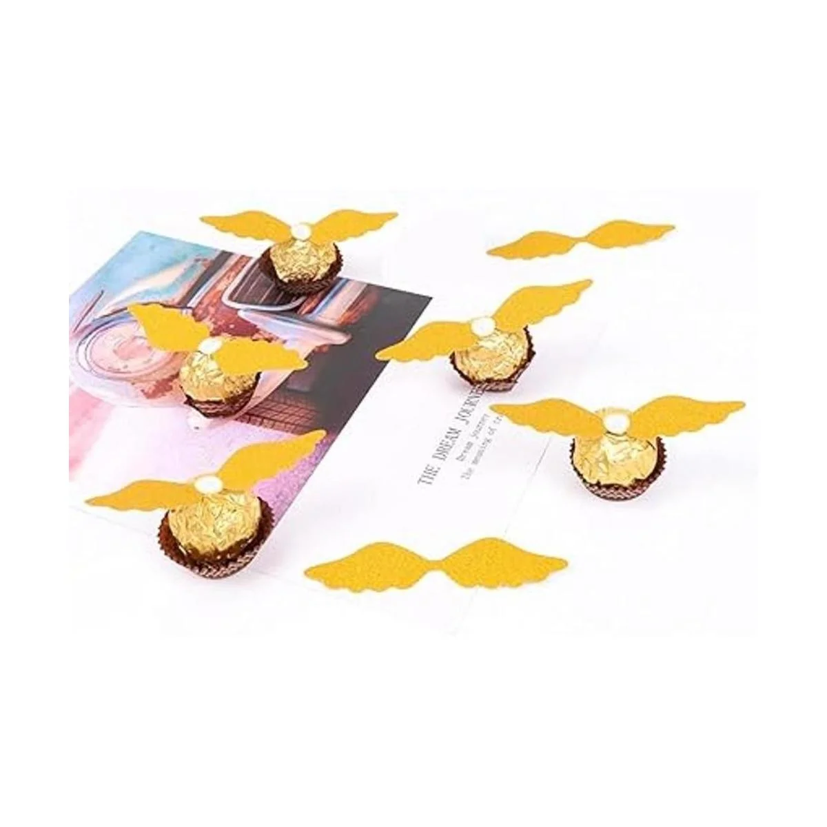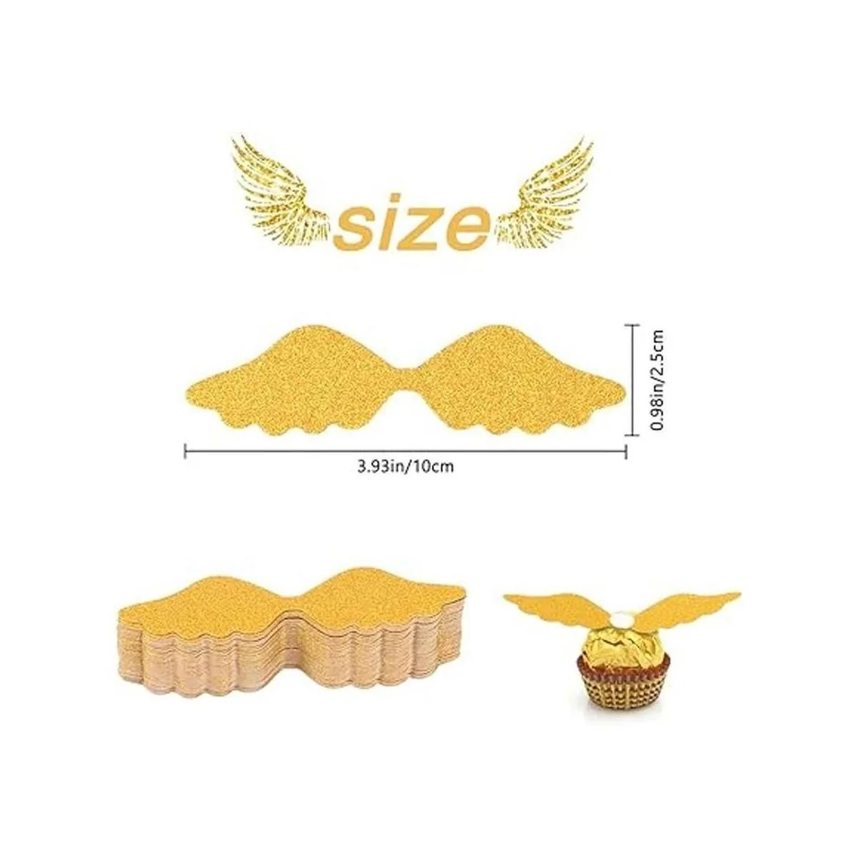 Decoraciones temáticas de chocolate de Harry Potter: el juego contiene 36 piezas, 1 x 3.93 pulgadas cada una. Recibirás las alas doradas que ves en las imágenes. Perfecto para fiestas Wizar o decoración diaria.