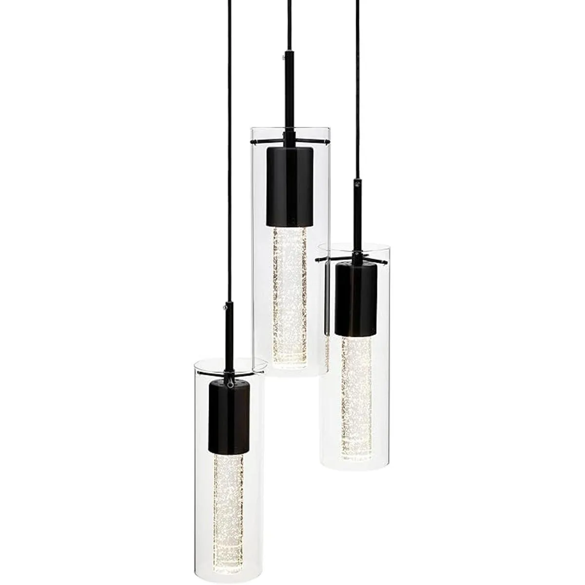 Características: lámpara colgante con pantalla cilíndrica de vidrio transparente y cilindro de cristal con pantalla de burbujas en acabado negro mate. Estas burbujas efervescentes en esta iluminación colgante de racimo brillarán muy bien la luz cuando las bombillas LED se enciendan que te dan luces estrelladas y una notable calidad de luz que añaden un toque elegante y un aspecto moderno a tu hogar.