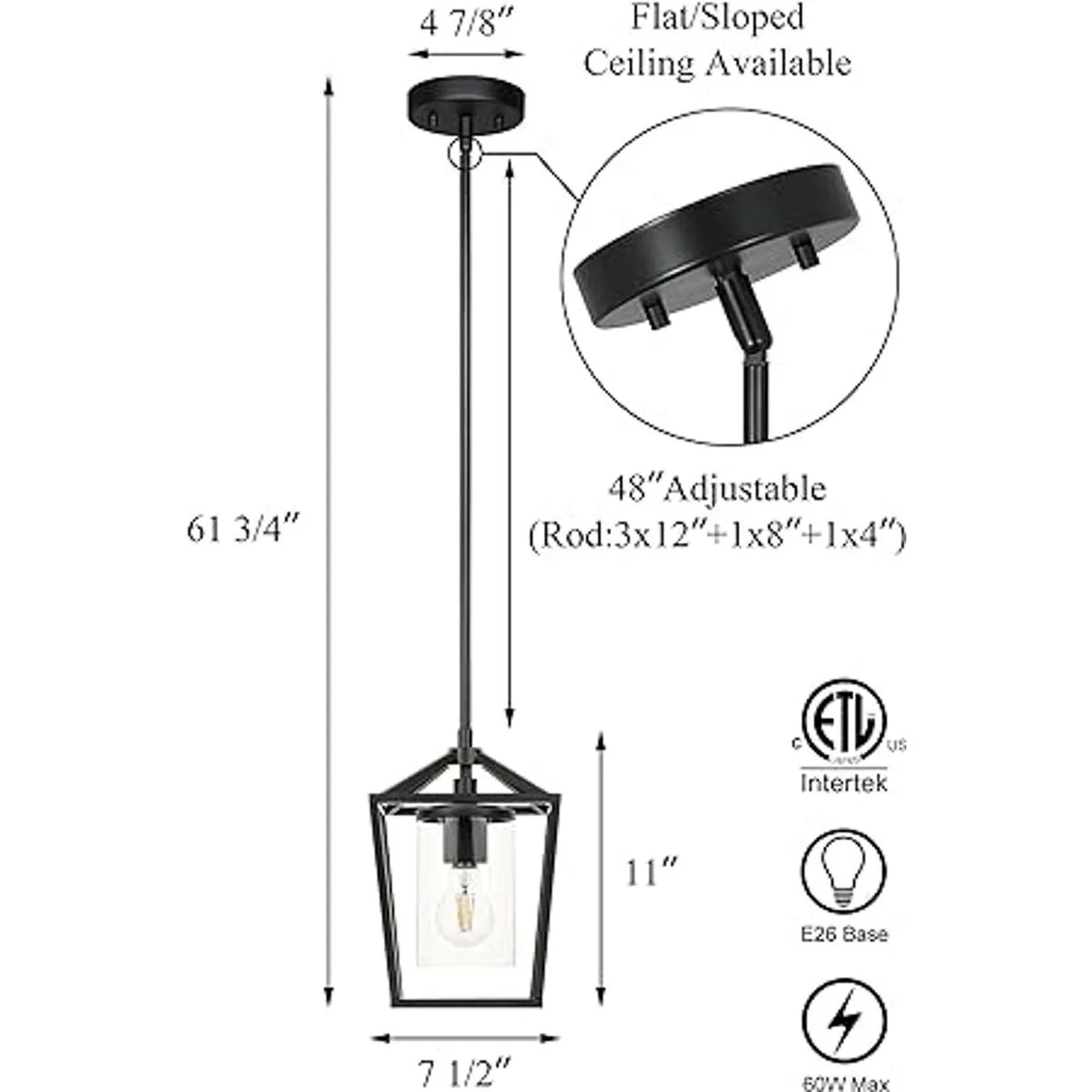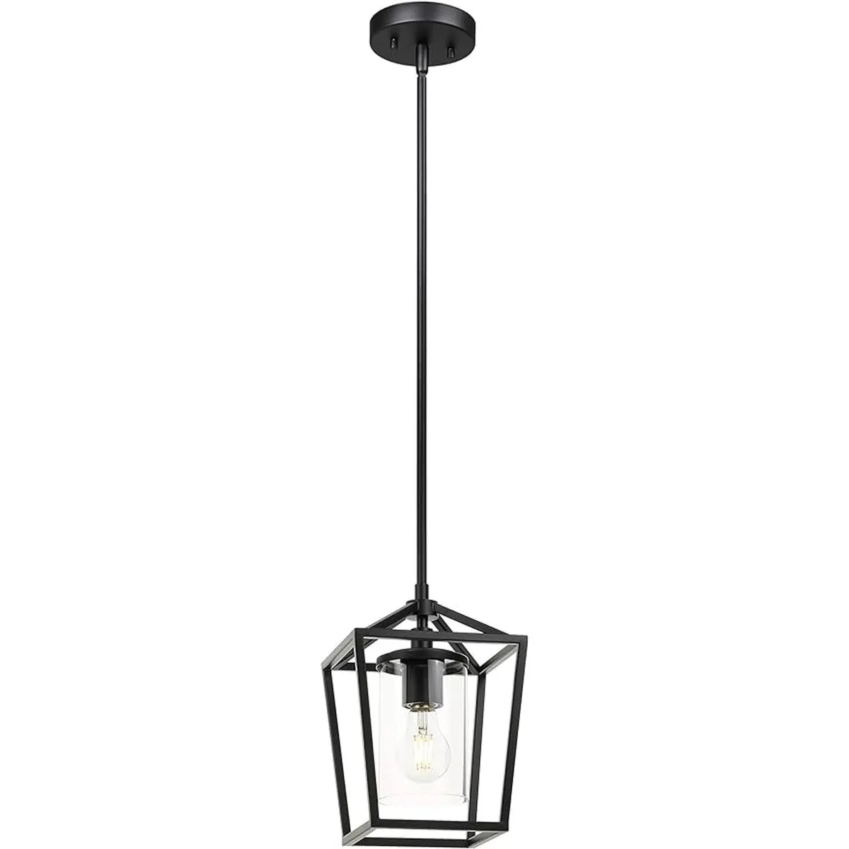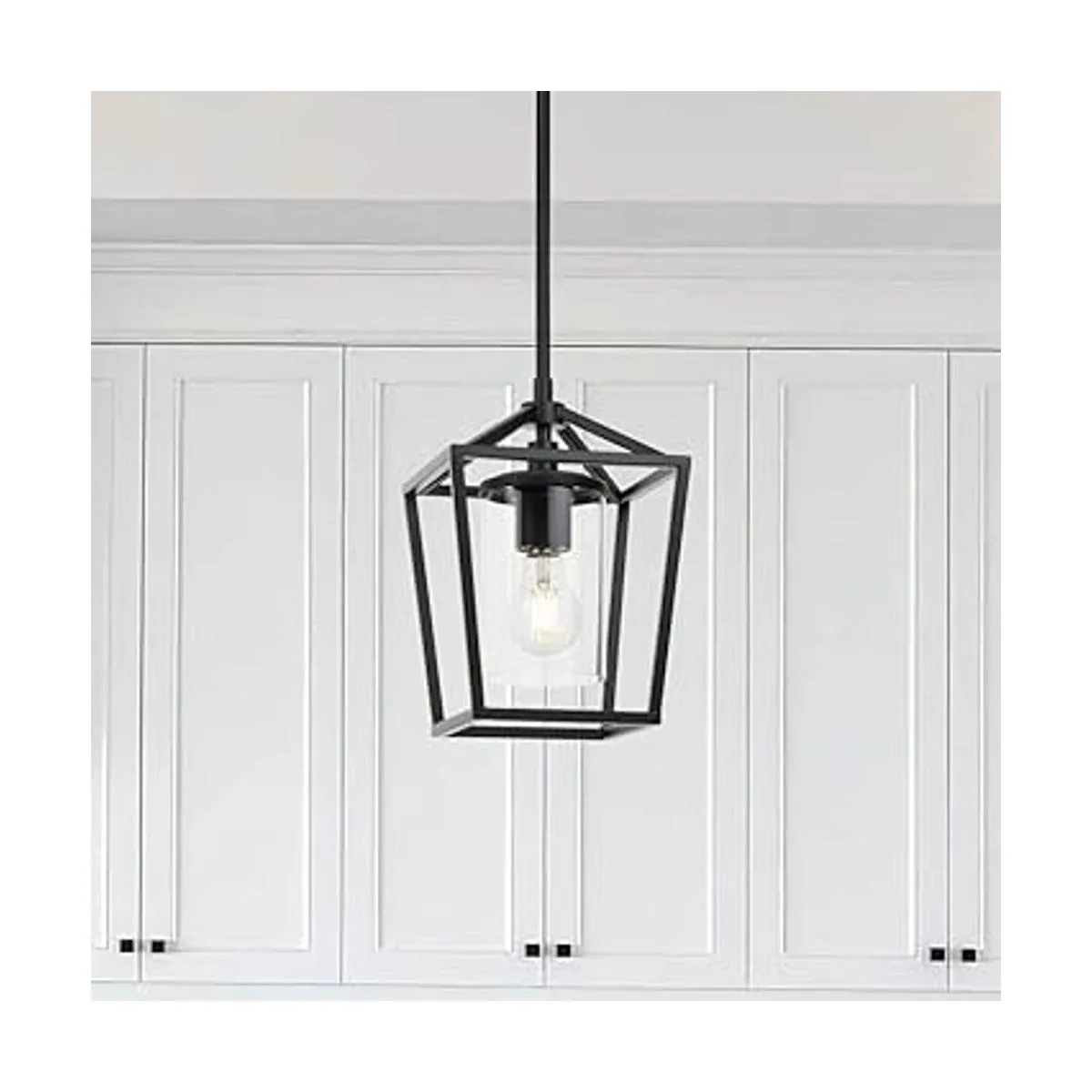 FEATURE: Pendant lighting with clear glass and durable iron lantern cage and various rods in matte black finish are commonly used as general lighting in the center of a bedroom, kitchen, living room, hallway etc. This 1 light pendant light is suitable for most home decorative styles and it can provide more lighting when installed on a kitchen island or dining table.