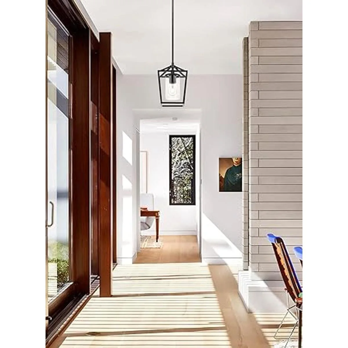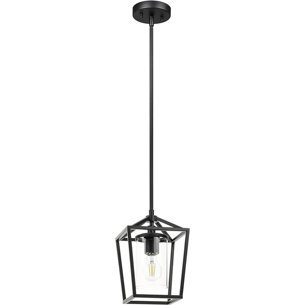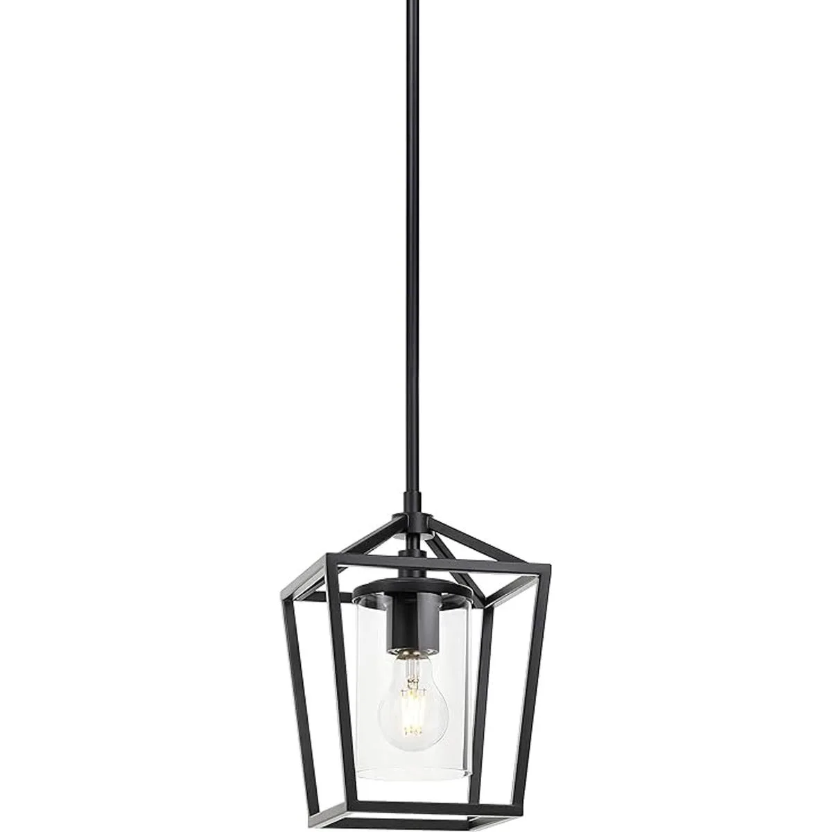 FEATURE: Pendant lighting with clear glass and durable iron lantern cage and various rods in matte black finish are commonly used as general lighting in the center of a bedroom, kitchen, living room, hallway etc. This 1 light pendant light is suitable for most home decorative styles and it can provide more lighting when installed on a kitchen island or dining table.