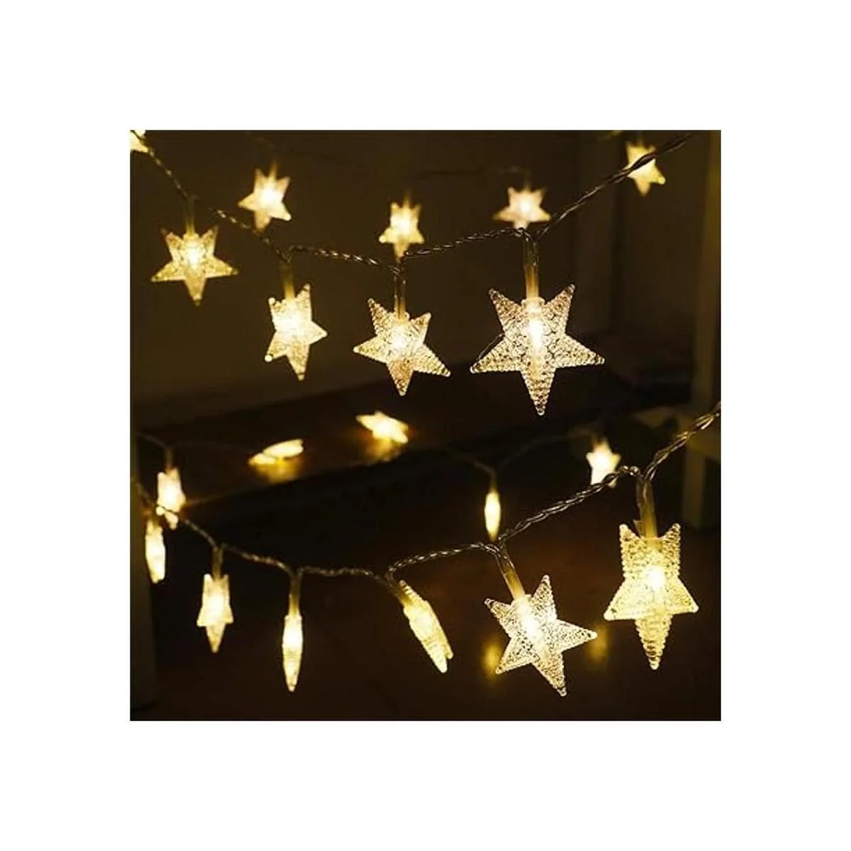 Guirnalda de luces decorativas con forma de estrella de árbol de Navidad con pilas: 50 luces LED con forma de estrella de 16.4 pies con control remoto y temporizador de luces regulables.