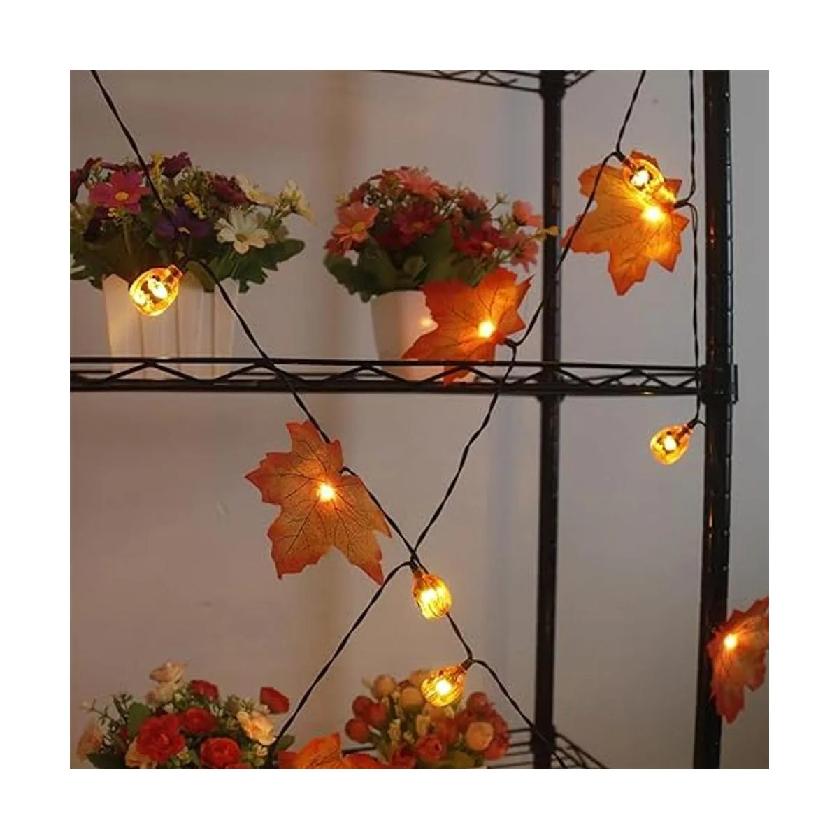 Luces decorativas de Halloween para Acción de Gracias al aire libre impermeables: grado impermeable IP67, adecuado para lluvia, nieve y clima húmedo. Perfecto para jardín al aire libre, Acción de Gracias, Halloween, chimenea, ventana, guirnalda de otoño, decoración de porche, patio, la combinación de calabazas y hojas de arce puede resaltar el ambiente otoñal de Acción de Gracias.