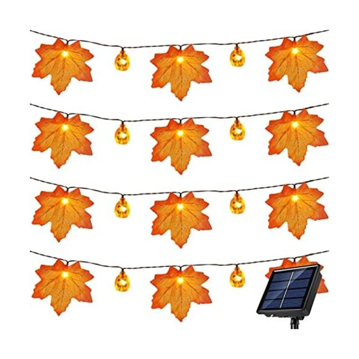 Xingpold Guirnalda de luces solares de hojas de arce de calabaza para exteriores, 50 luces LED de 30 pies, guirnalda de otoño con luces, luces de calabaza impermeables para Acción de Gracias, Halloween, otoño, festival de cosecha al aire libre, decoración de fiesta de jardín