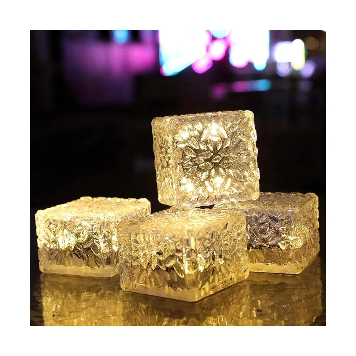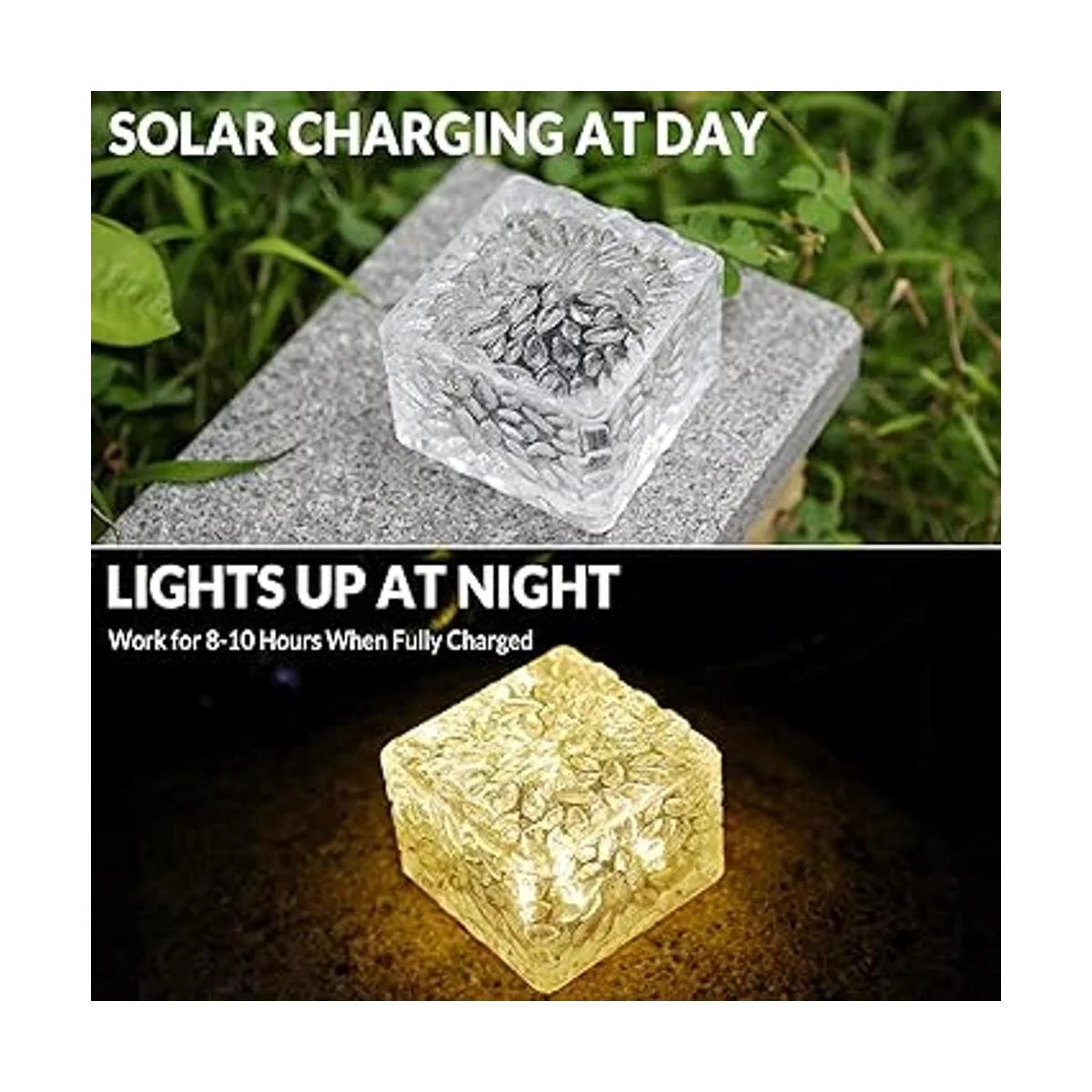 Luces solares de ladrillo de uso amplio Las luces solares de cubitos de hielo son una decoración creativa en el jardín para hacer un ambiente romántico que se puede colocar al aire libre, como jardines, pasillos, terrazas, aceras, cubiertas, escaleras, caminos, Navidad, bodas, decoraciones de fiesta, etc. No pongas la luz solar de cubitos de hielo en tanques de peces o piscinas.