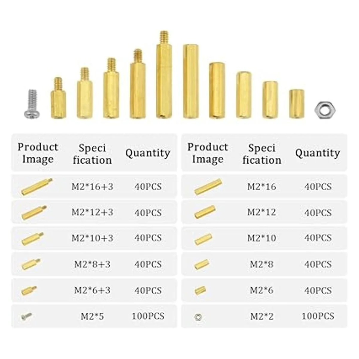 XINGYHENG 600 piezas M2 latón machohembrahembrahembra, kit surtido de tuercas de tornillo de acero inoxidable latón M2