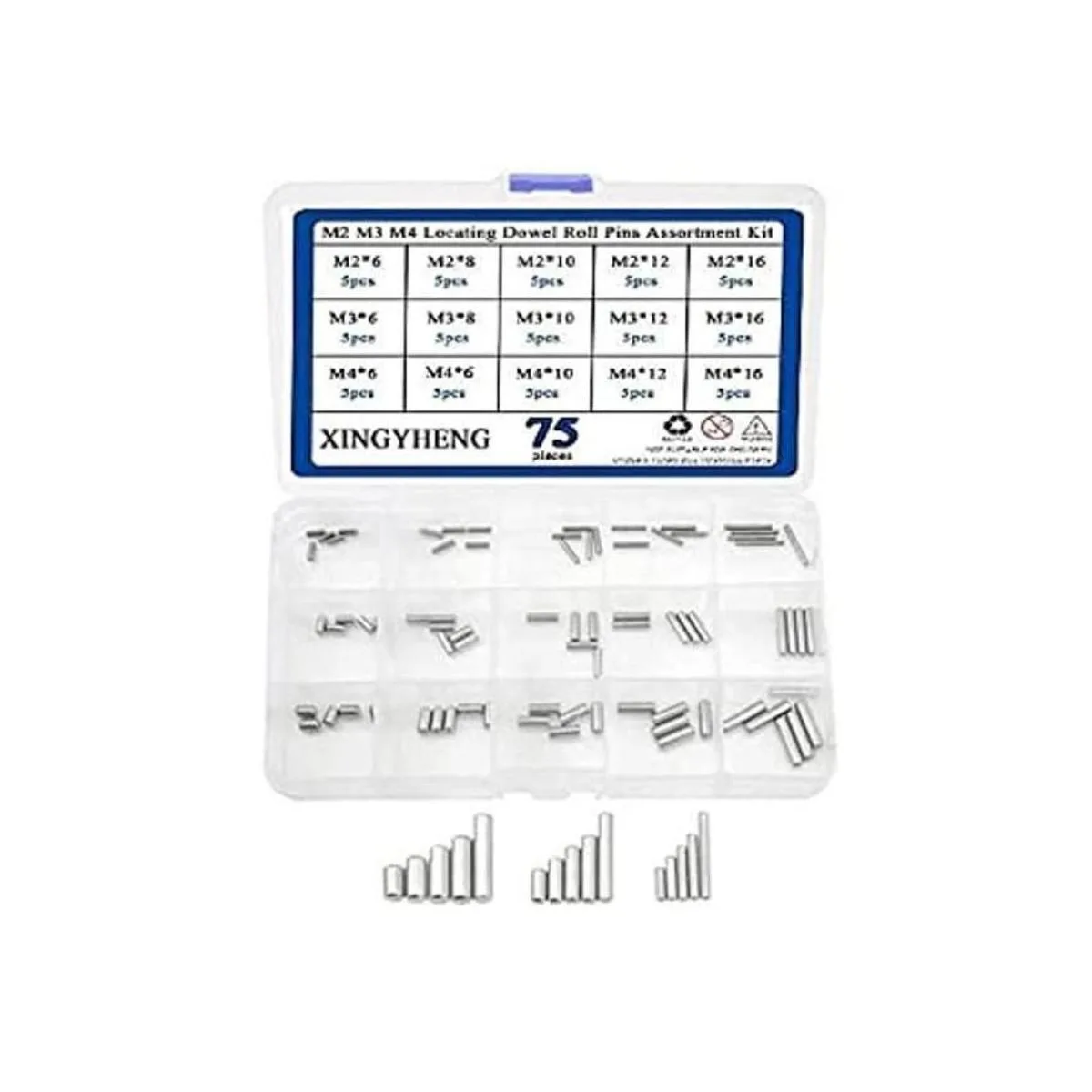 XINGYHENG 75 piezas 15 tipos M2 M3 M4 304 Pines de acero inoxidable surtido conjunto de elementos fijos redondos y rectos con una caja de almacenamiento