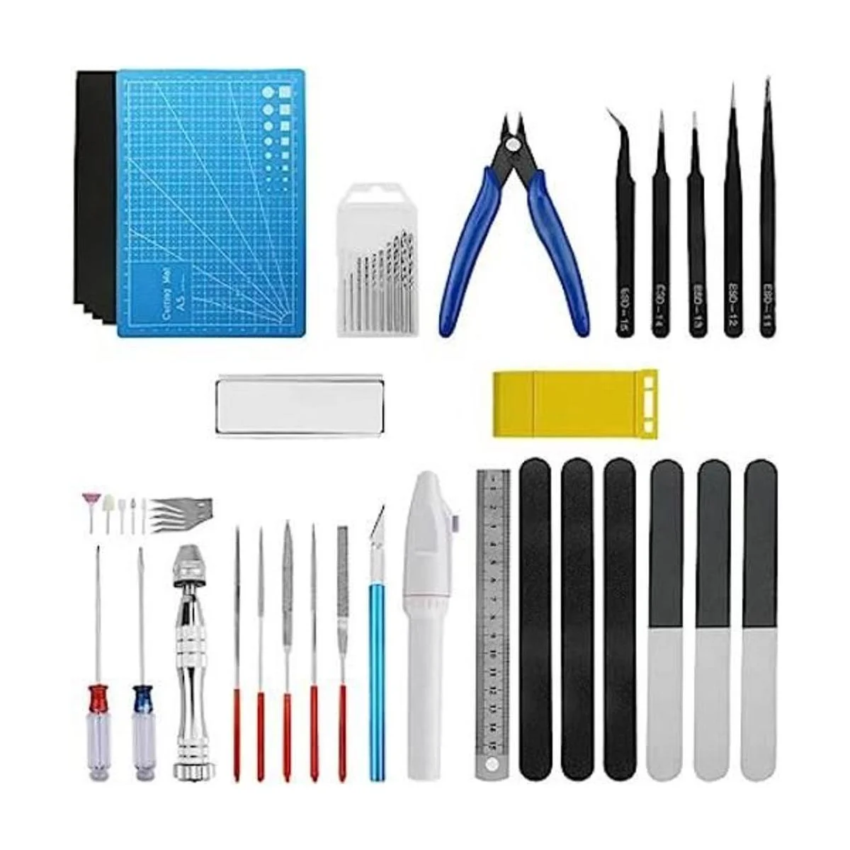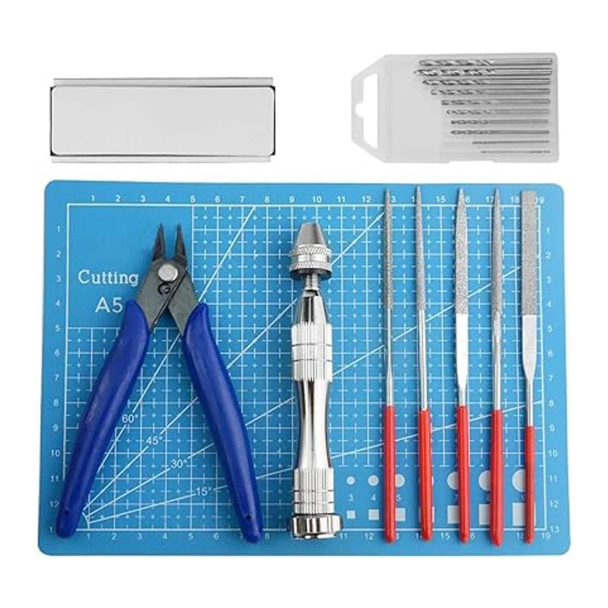 XINGYHENG Juego de 50 herramientas básicas para modelar modelos de manualidades, kit de herramientas de construcción para modelo, montaje de coche, construcción y reparación de edificios, kit de manualidades
