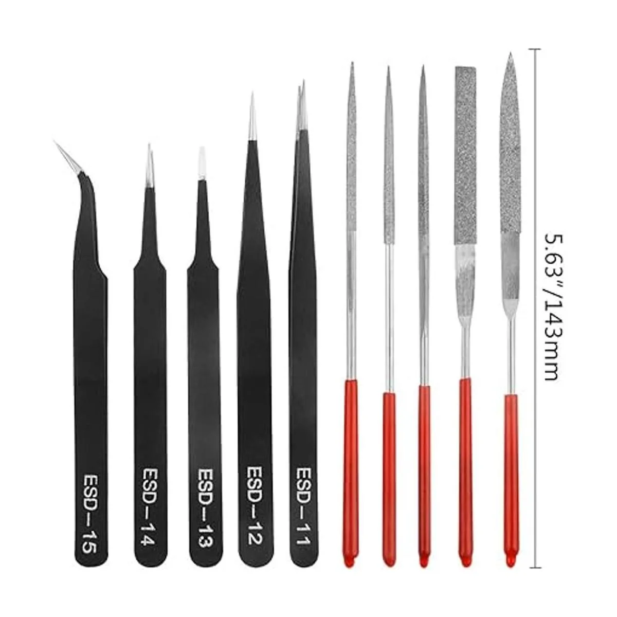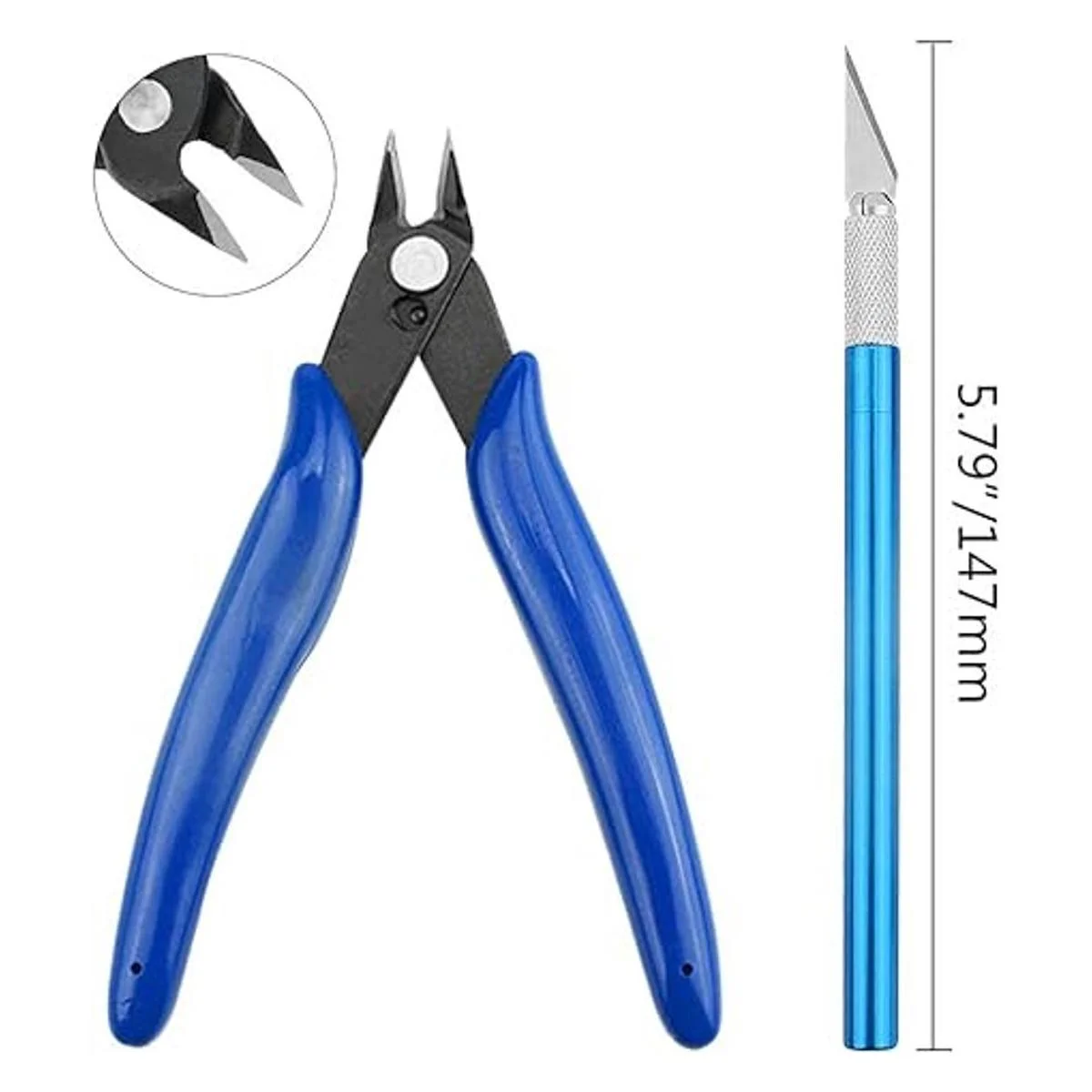 Super carácter: el cuchillo de punta recortadora está firmemente sujeto y tiene alta dureza, mango de plástico y diseño antideslizante. Con tapa de protección de seguridad para proteger la cuchilla. Los alicates de corte están hechos de acero al carbono, buena durabilidad. Las pinzas están hechas de acero inoxidable de alta resistencia, antiestático, antiácido, anticorrosión y antimagnético. Otros artículos también tienen buena calidad.