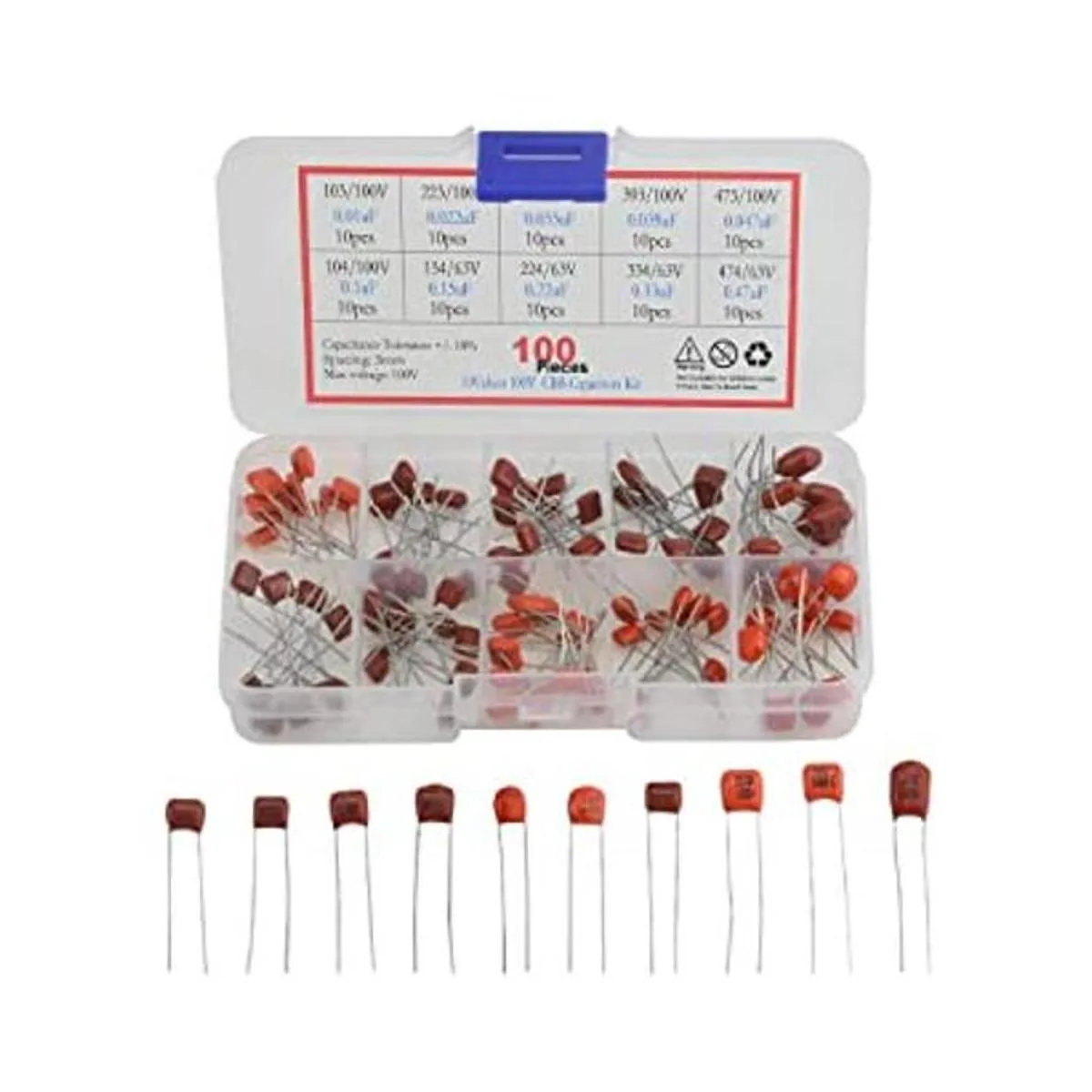 XINGYHENG Kit de 100 condensadores de película de polipropileno metalizado CBB de 10 valores, 100 V, 10nF474nF