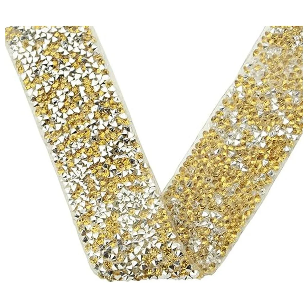 XINGYHENG Tiras de diamantes de imitación de cristal de 1.2 in de ancho y 2 yardas de tiras de diamantes de imitación de cinta de diamante, parche de pegamento decorado con red de diamantes de imitación para manualidades, proyectos