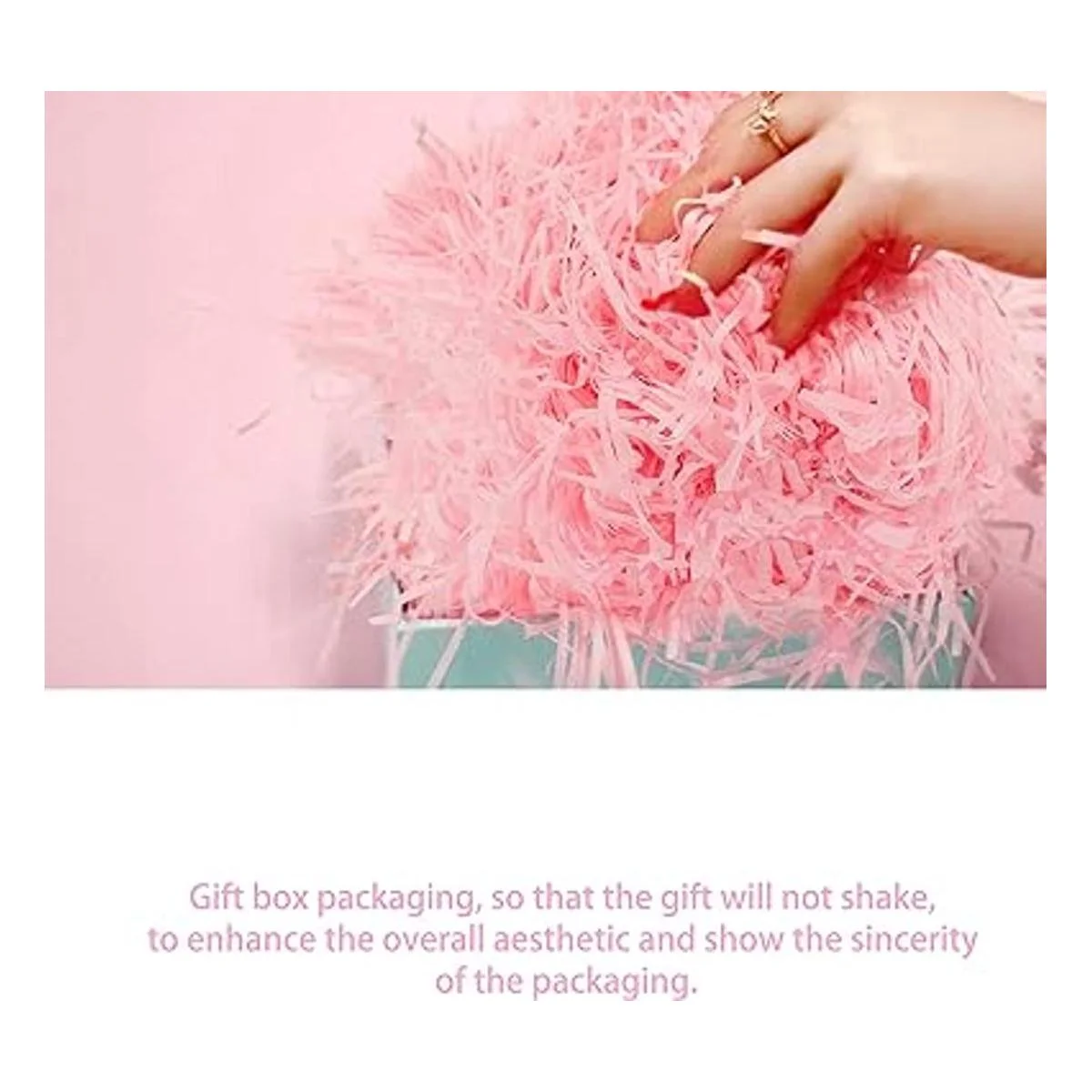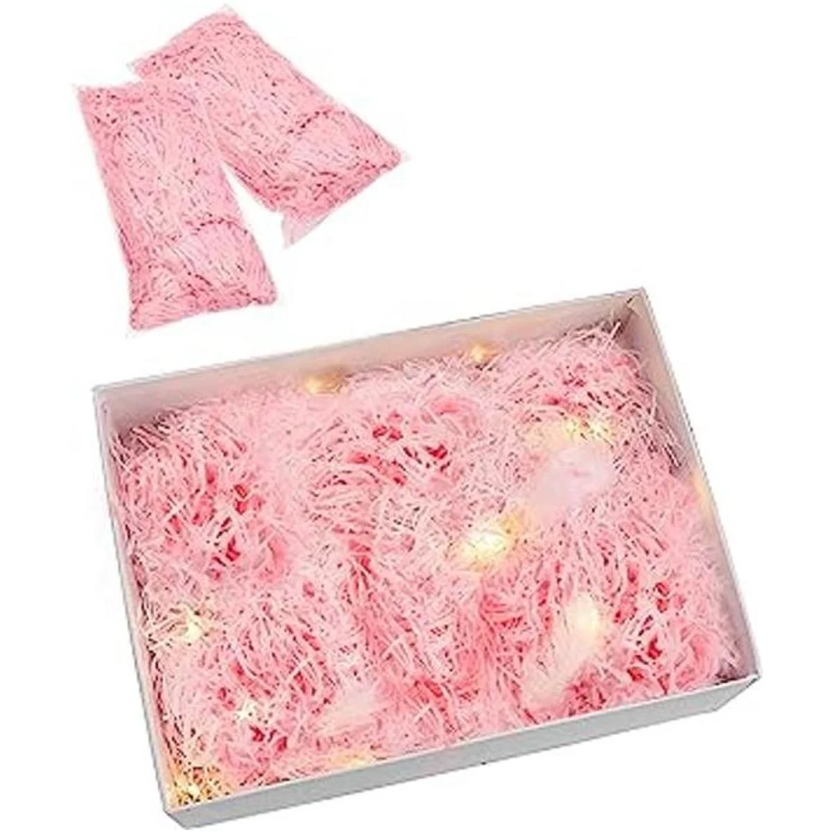 XINYIDAO Relleno de hierba de cesta, relleno de trituración de papel de corte arrugado, relleno de papel de rafia, relleno de embalaje de caja de regalo, accesorios de embalaje de decoración de fiesta de 7.05 oz rosa claro