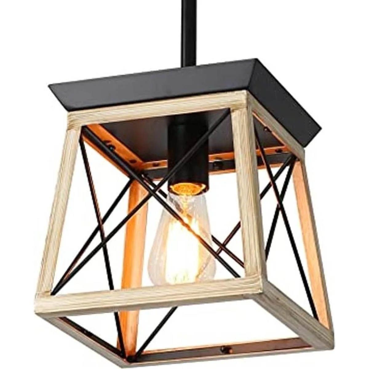 Diseño clásico: nuestra lámpara de comedor es simple pero elegante, la forma geométrica es muy limpia y duradera. Ideal para casa de campo. El acabado de roble con marco de hierro grafito se mezcla perfectamente ofreciendo un estilo moderno artístico