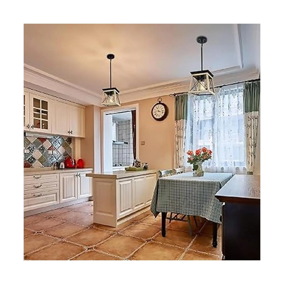 XIPUDA Iluminación de isla de cocina, lámpara rústica de comedor, luces colgantes de granja, lámparas de araña para campo americano