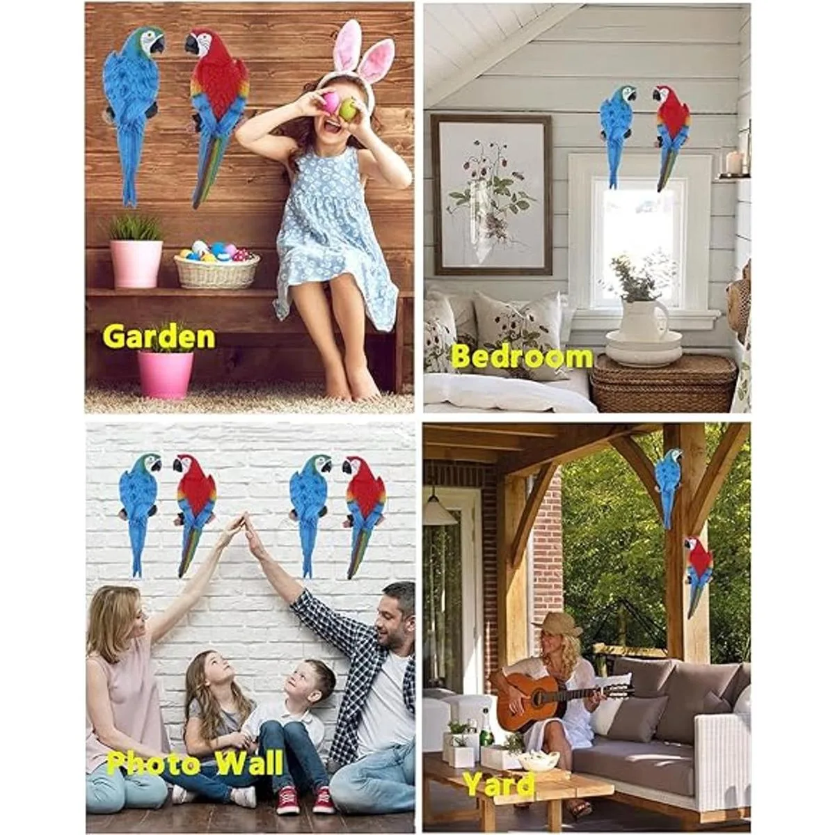 Fácil de usar: hay un agujero en el vientre del loro, puedes colgar la estatua de loro en cualquier lugar con clavos o ganchos. Las estatuas de loro para decoración del hogar son ideales como regalos creativos de manualidades, muebles para el hogar, muebles de escritorio de oficina, muebles de jardín, muebles de patio, accesorios de fotos, muebles de pobre, etc.