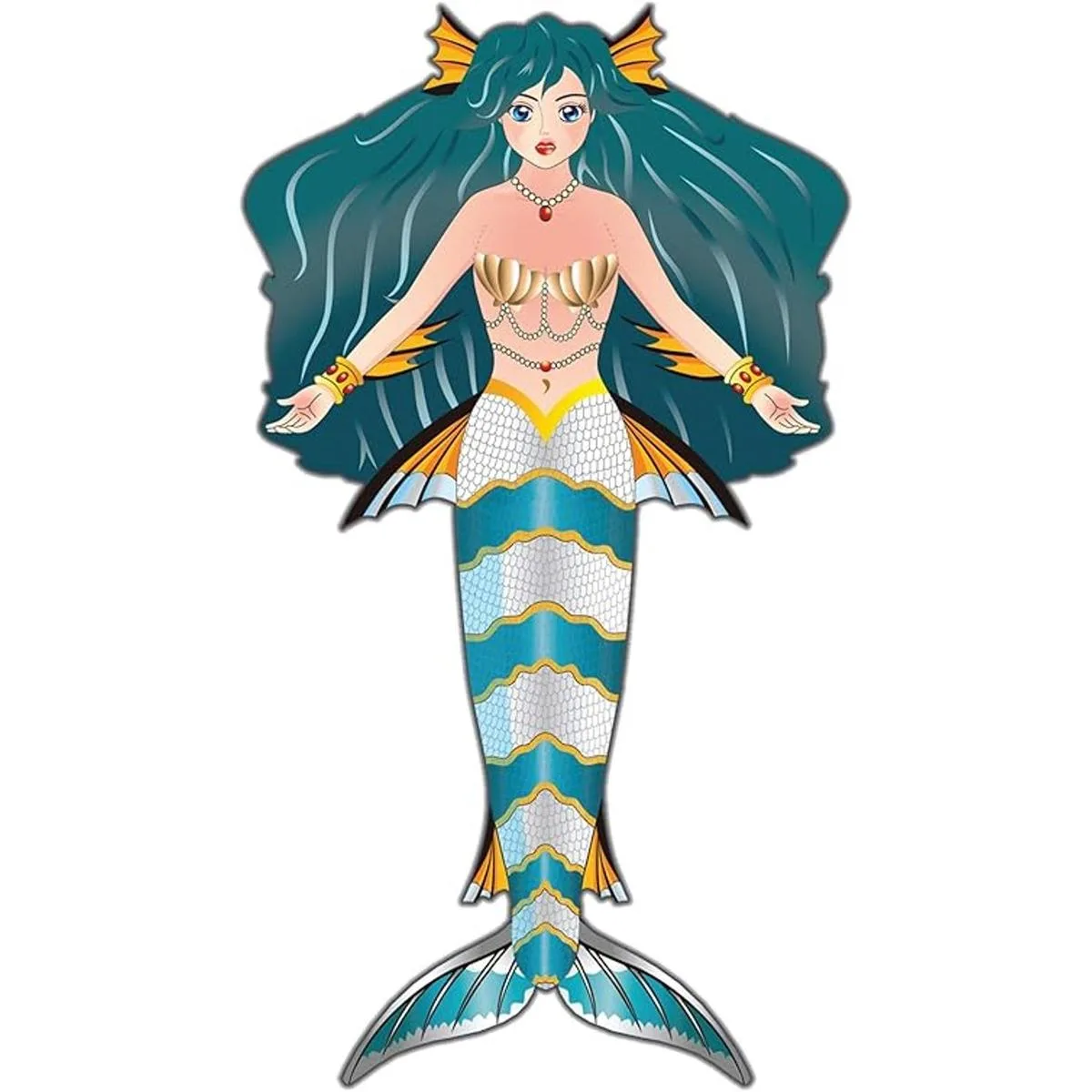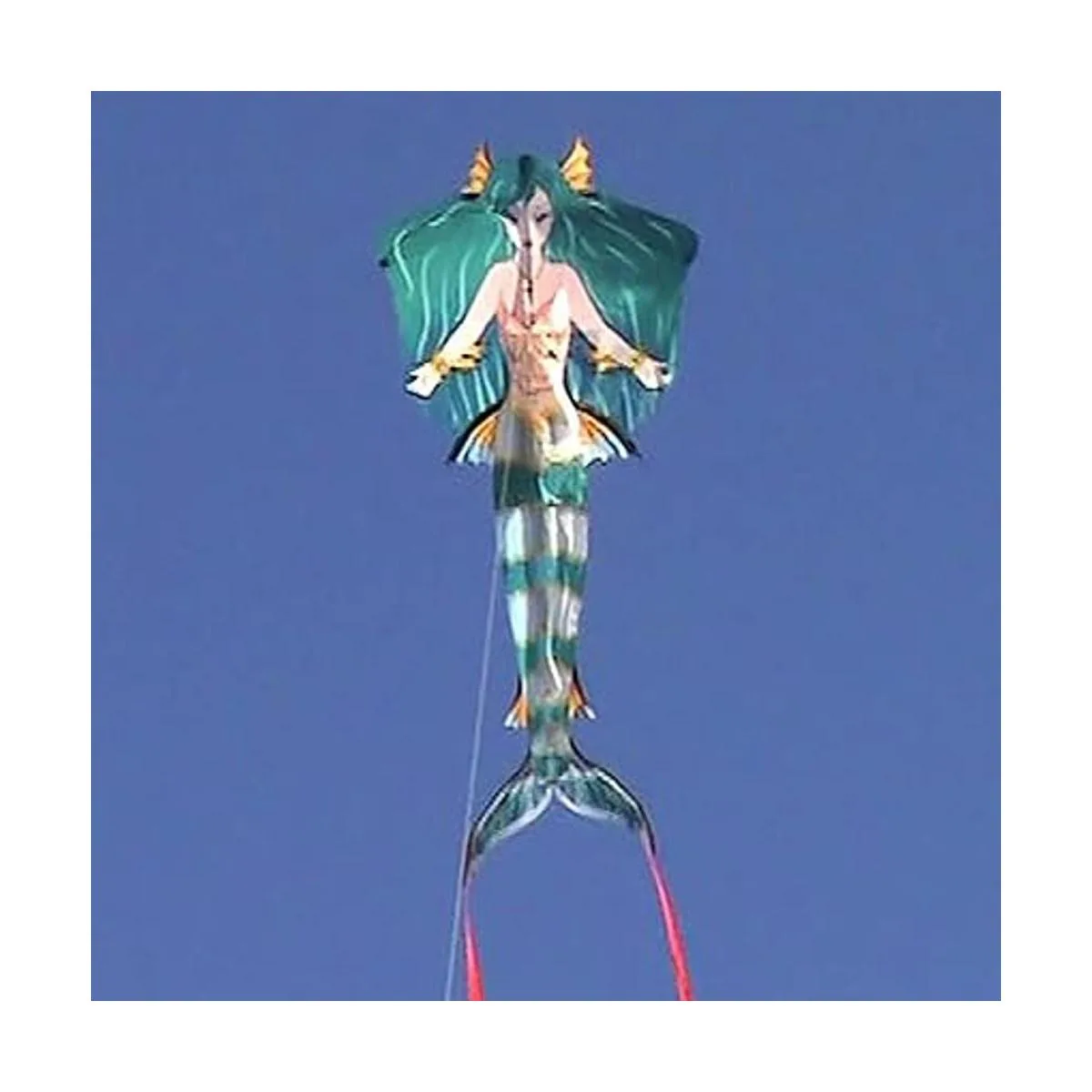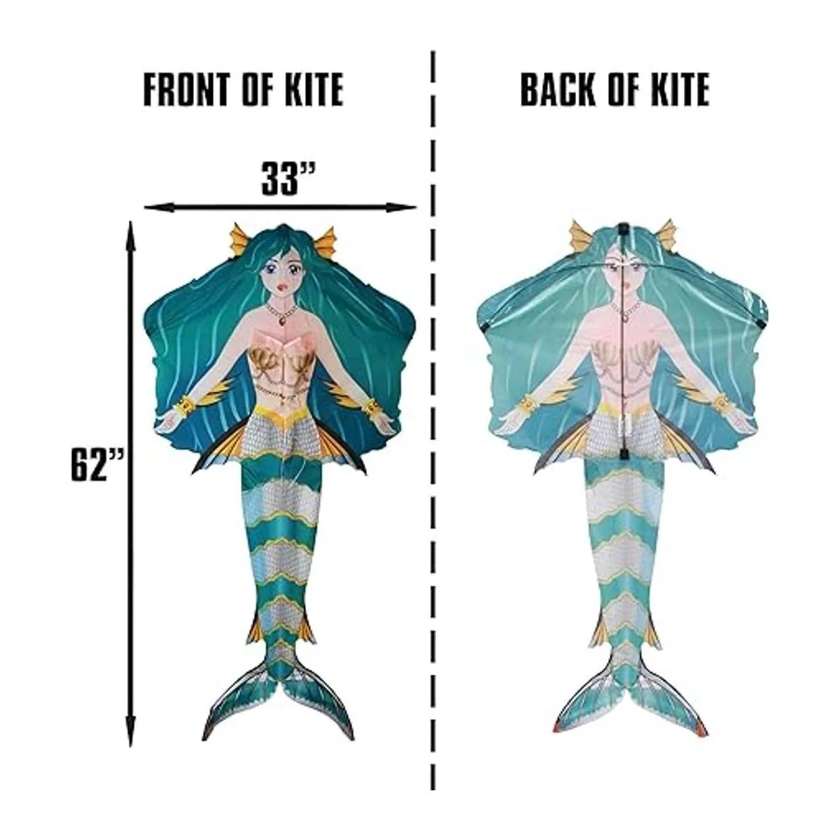 MERMAID KITE SPECS: 62 Inches Tall, the Fantasy comes with Mermaid Fantasy Ripstop Nylon Figure Kite Sail, Fiberglass Airframe, SkyTails, Kite Handle, and 170ft of 25lb Kite Line w/ QuikClip