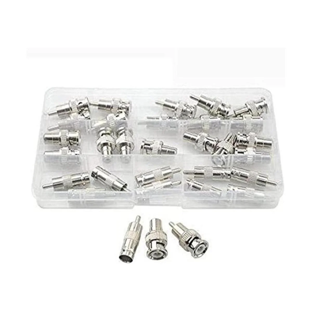 XLX 30pcs BNC macho a RCA macho 10pcs BNC hembra a RCA macho 10pcs BNC macho a RCA hembra 10pcs Plug Conectores Conexión metálica impermeable Conversión Assortment Kit