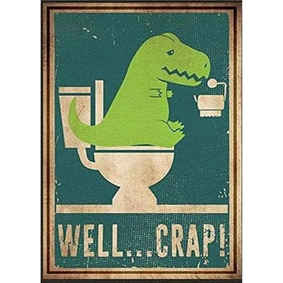 XMDDX Letreros divertidos de arte de baño para decoración del hogar, letrero de metal de 12 x 8 pulgadas, divertido dinosaurio arte de dinosaurio
