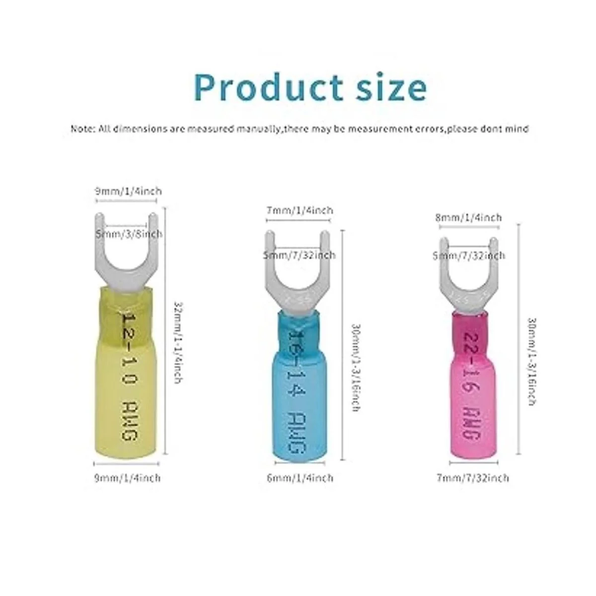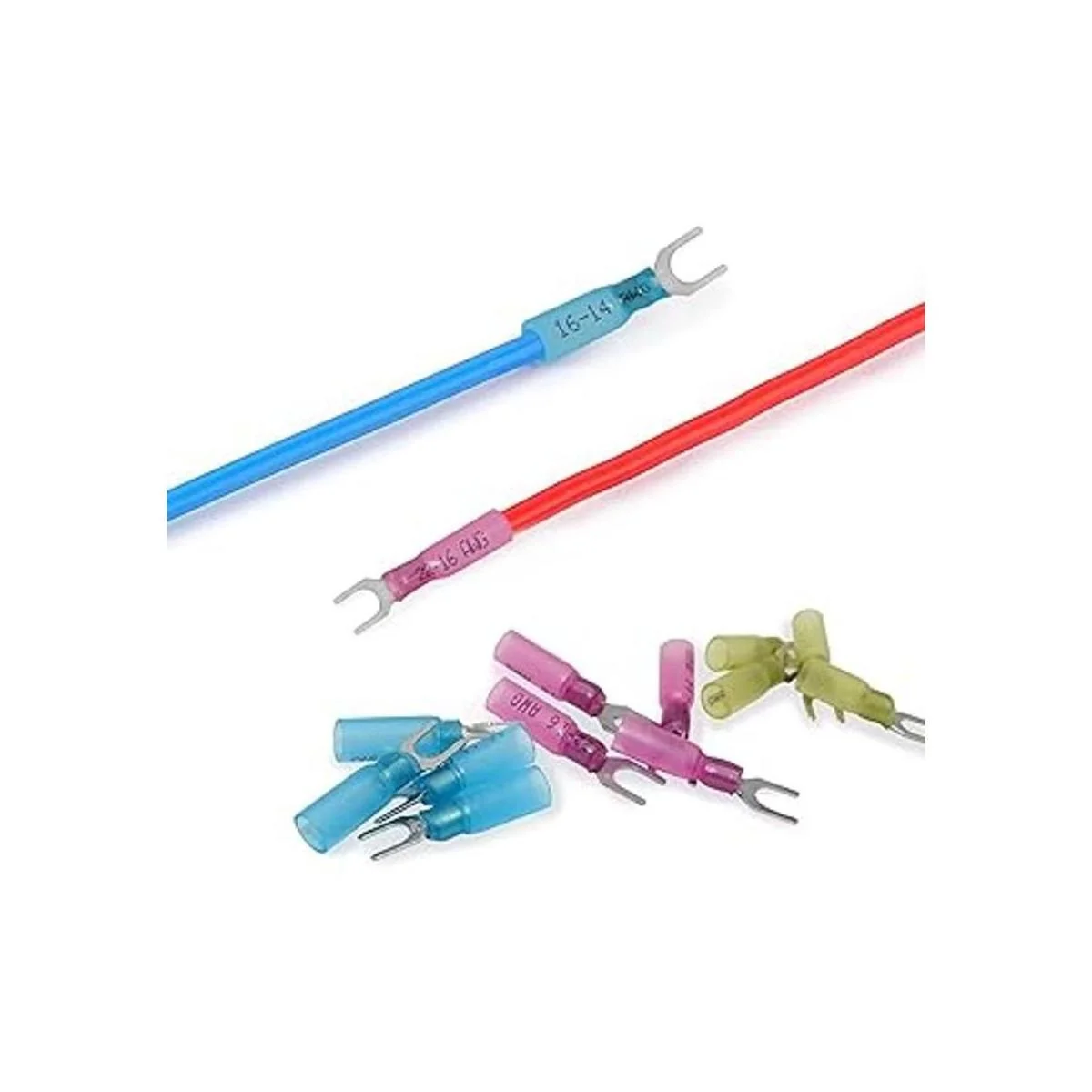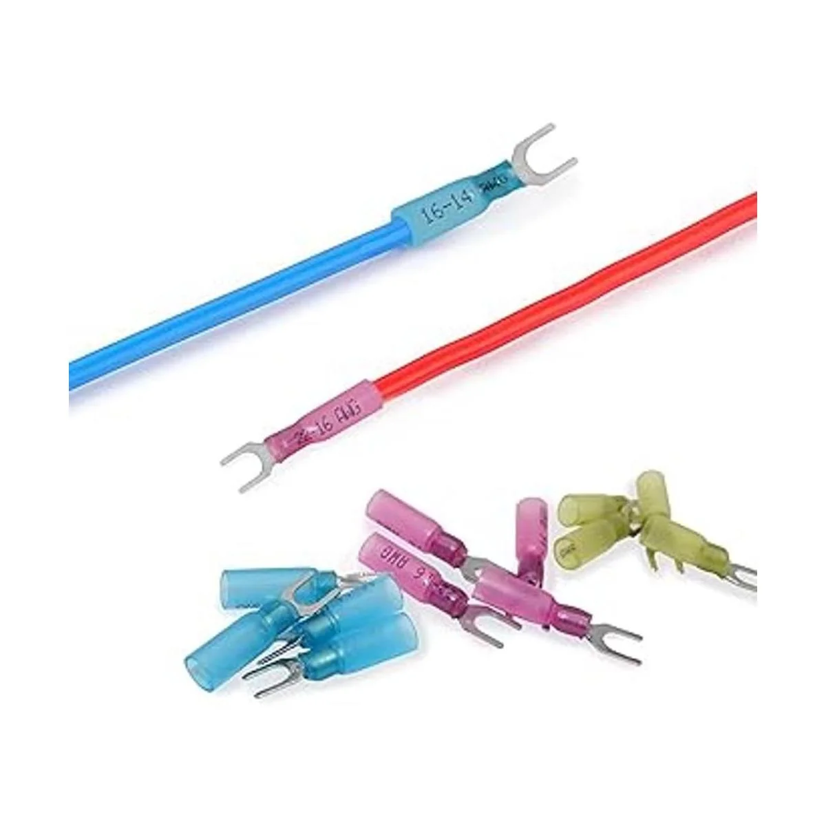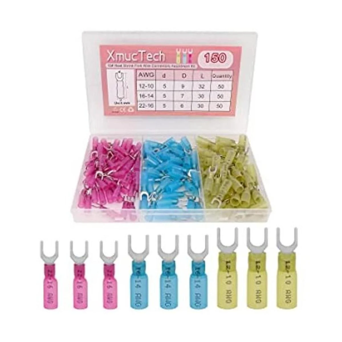 XmucTech 150 conectores de horquilla termocontraíbles 2216 1614 1210 AWG 10 conectores de horquilla de crimpado, conectores de crimpado, terminales de horquilla, conectores eléctricos aislados para aeronaves, barcos, camiones, estéreo