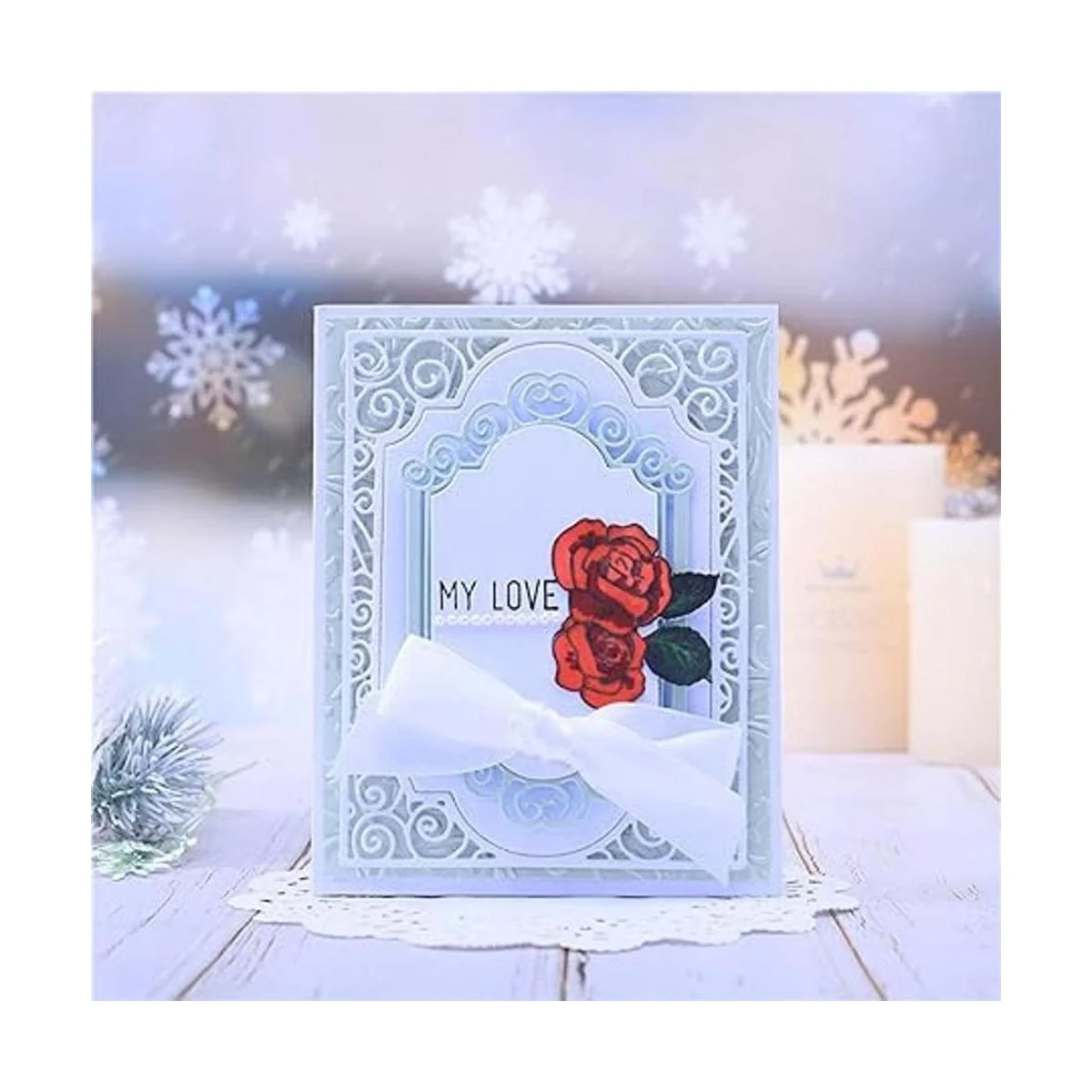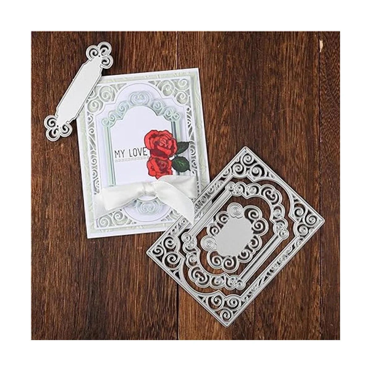 XMYXCRAFT Troqueles de metal con marco de encaje de flores, con borde de encaje de boda, marco rectangular, troqueles cortados, plantillas para álbumes de recortes, álbumes de recortes, papel decorativo en relieve, fabricación de tarjetas