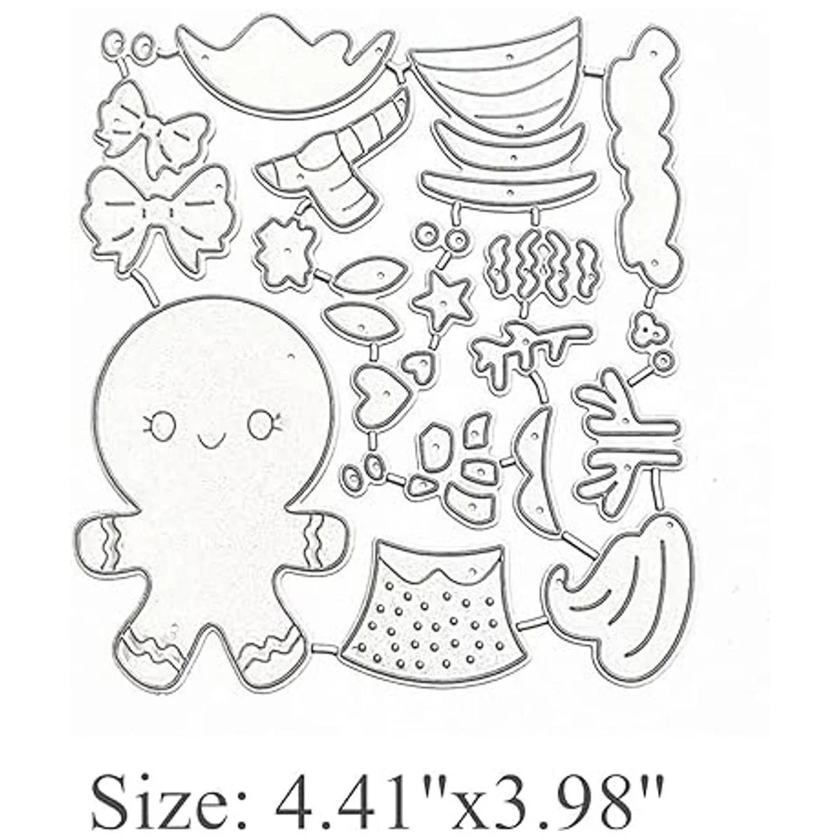 Color y tamaño: Color: plateado. Tamaño: 4.41 x 3.98 pulgadas. El paquete incluye: el juego de troqueles de corte contiene 1 unidad/juego de plantillas de metal con patrón de Gingerbread Man.